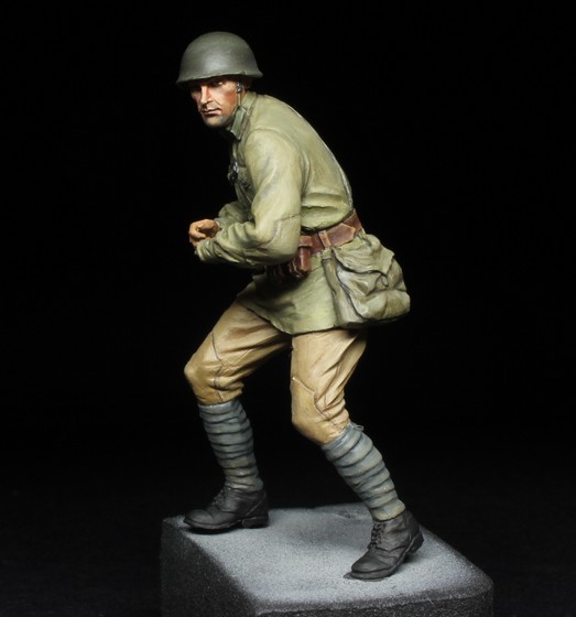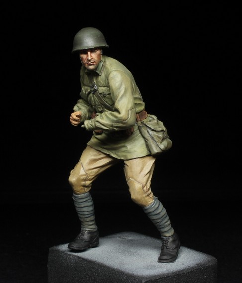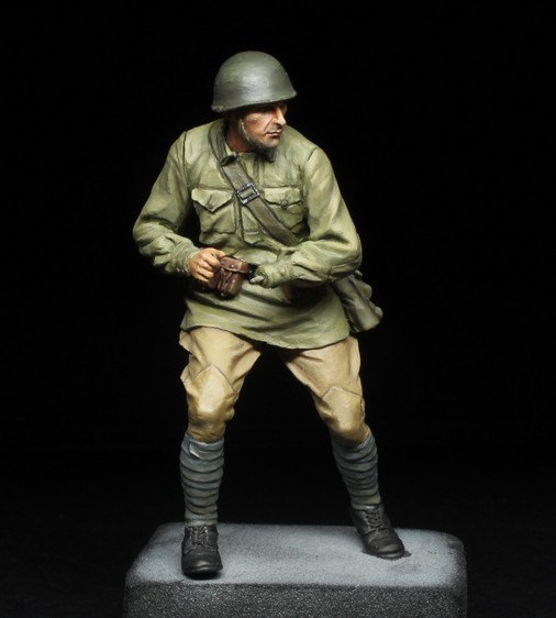 Чтобы отвлечься сделал еще несколько промежуточных фото бойца РККА. Так как у нашего бойца совсем немного снаряжения для большей выразительности "разнес" гимнастерку и галифе по цвету.