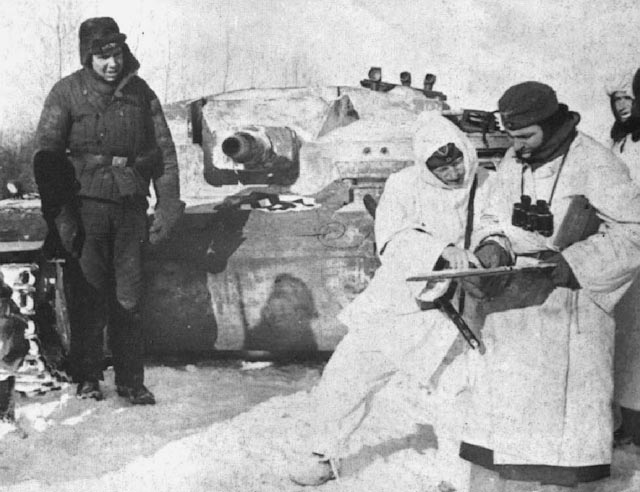 Интересно последнее фото. На самоходчике одета не только наша ушанка, но еще и наш ватник.