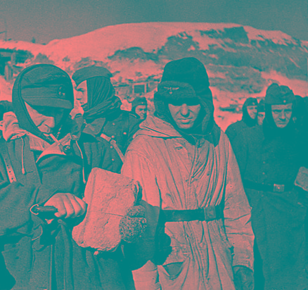 На первом фото - зенитчики. Все в советских ушанках!