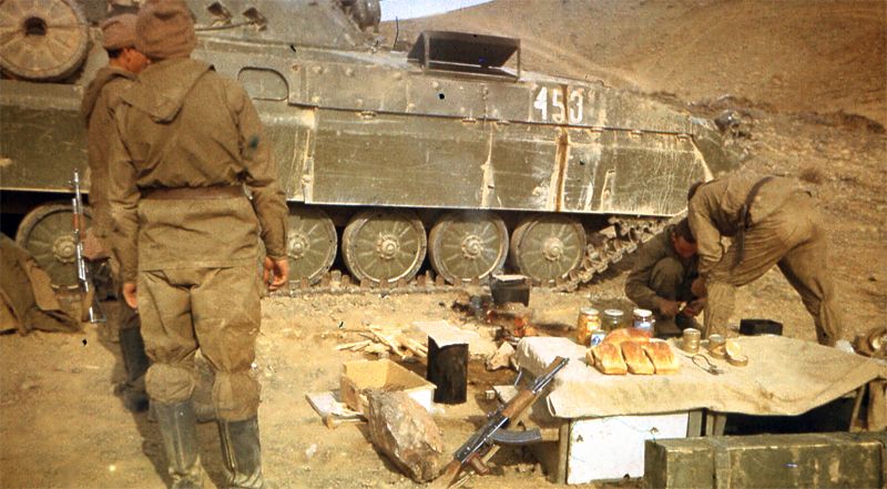 Разгрузка на пулеметчике самодельная, сделанная из сапс.жилета ,(который входит в комплект БМП,танков) и РД. В книге "Спецназ ГРУ в Афганистане" (сканировать лениво) есть даже два вида спереди, сзади.