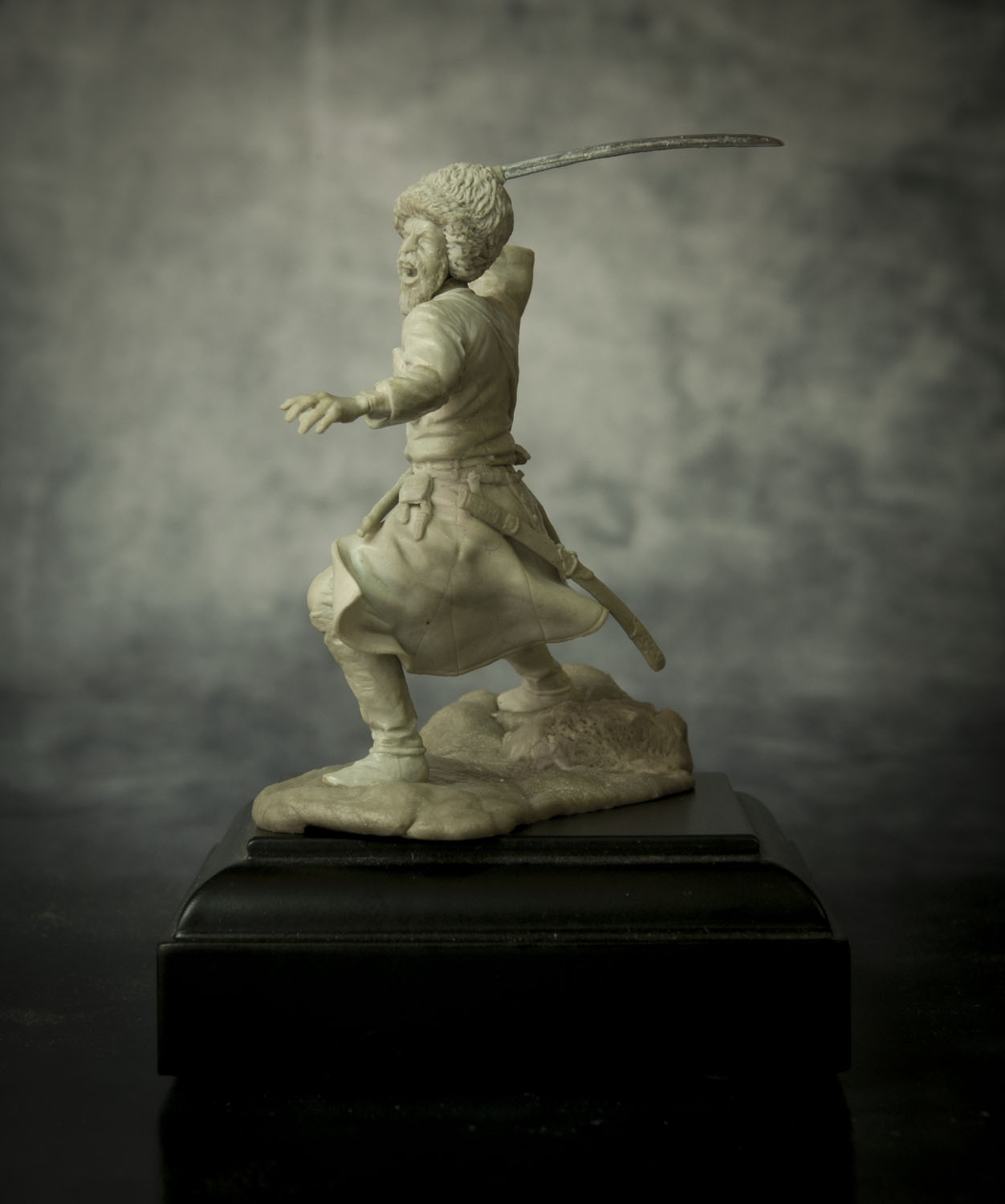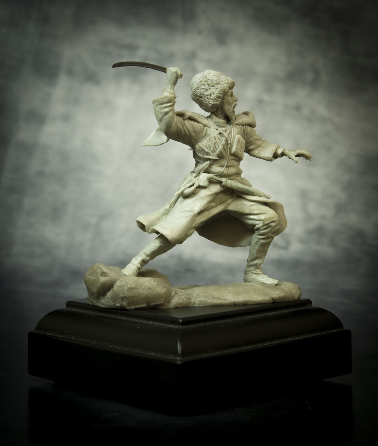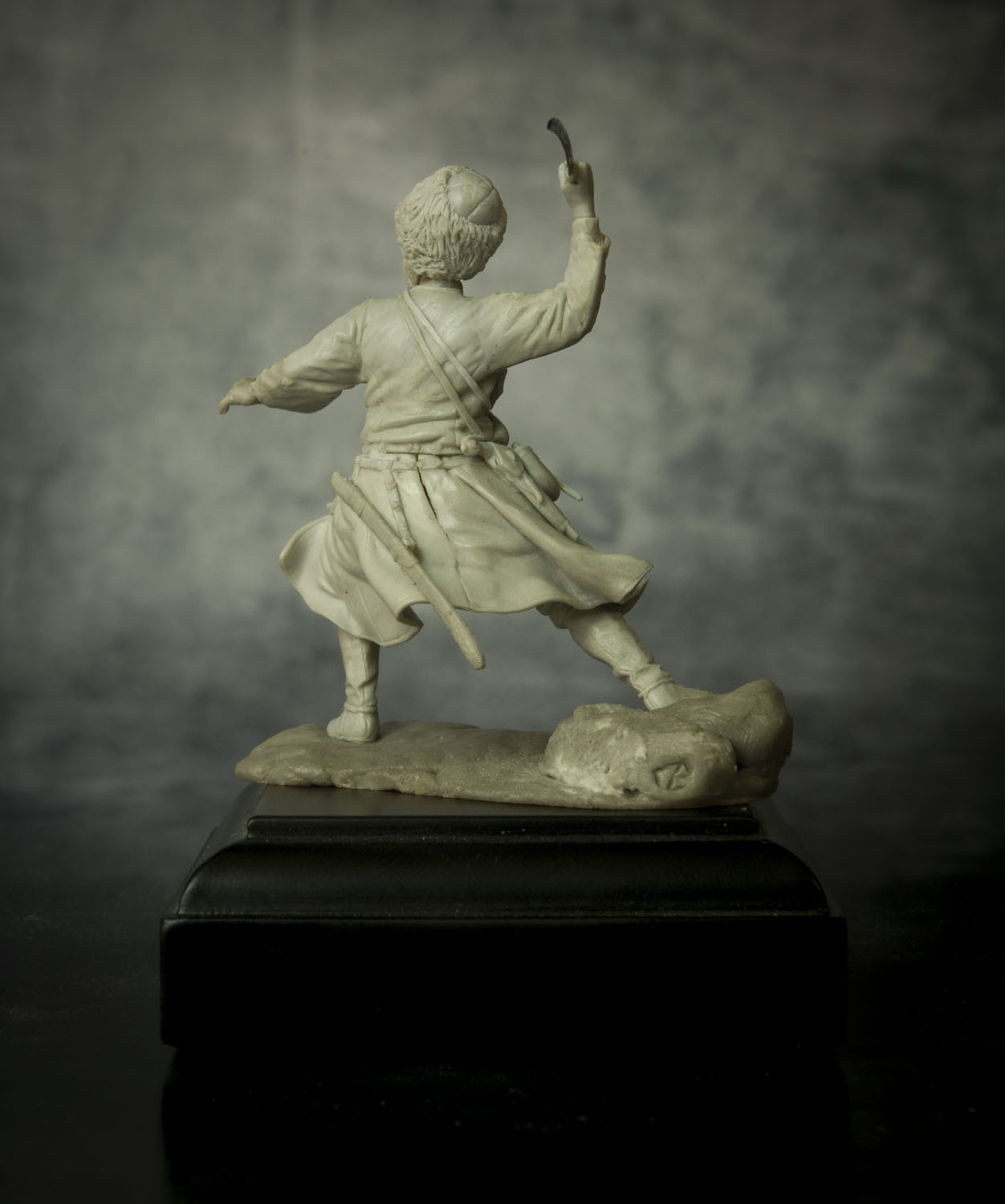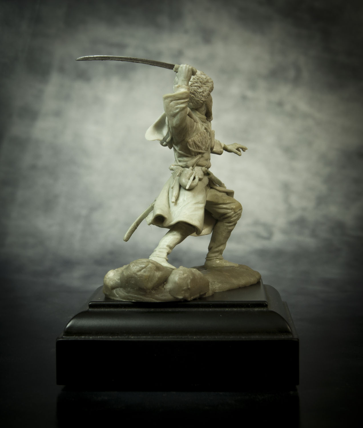 По поводу позы, поверьте, но это лучшее, что возможно было из этой позы сделать. А именно: не так давно, на другом форуме, тамошний админ решил провести конкурс - типа есть картинка, некоего Captain Orlando Ruben Mendoza, вот участники ее и будут лепить, с как можно наибольшим соответствием именно оригинальной картинке, вот только эпоху и персонажа можно было выбрать на свое усмотрение. К сожалению на картинке поза анатомически ошибочна. Картинку, того самого то ли паралитика, то ли того, кому только что судорогой спинные мышцы свело, то ли того, кого только что пчела промеж лопаток ужалила, я прикрепляю ниже, дабы вы сами смогли оценить, что на тех условиях, с максимальным соответствием позы, это действительно лучшее, что с такой позой можно было сделать.Игорь Немилов Wrote: Поза неестественная. Создаётся впечатление, что разные части тела движутся несогласовано. Замах неправильный. Положение левой руки нехарактерное. (Если бы в ней был кинжал!..)