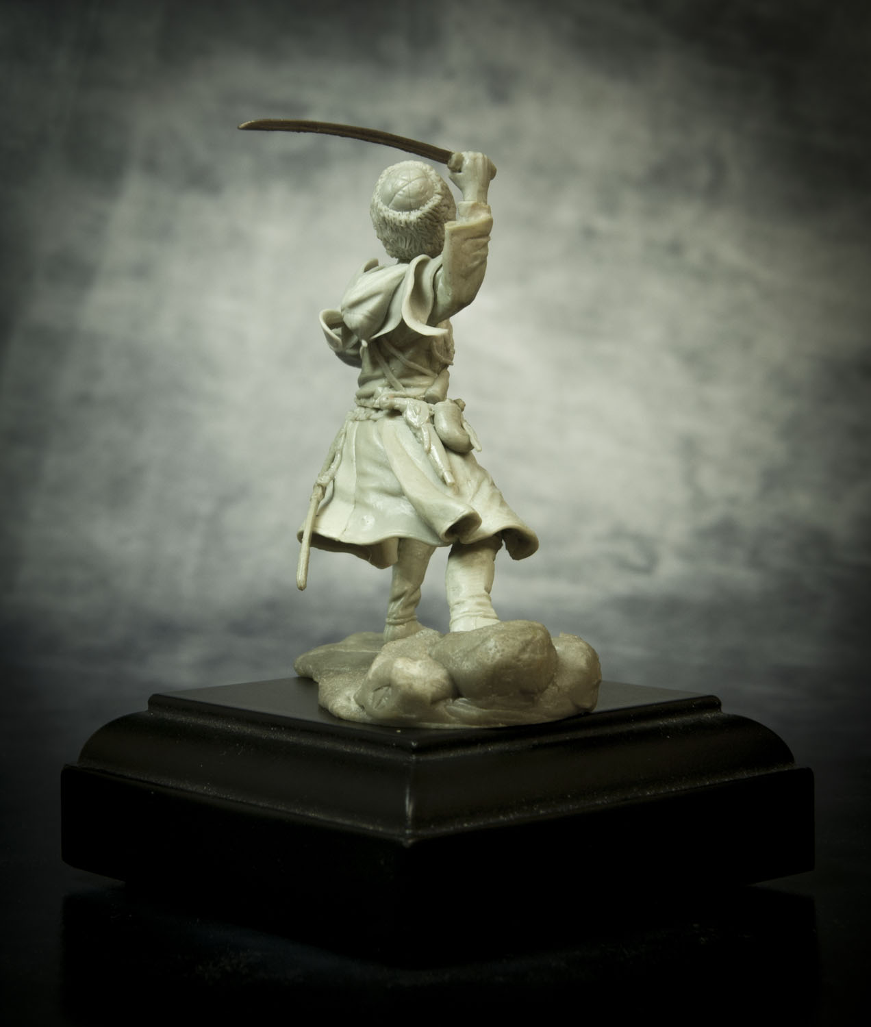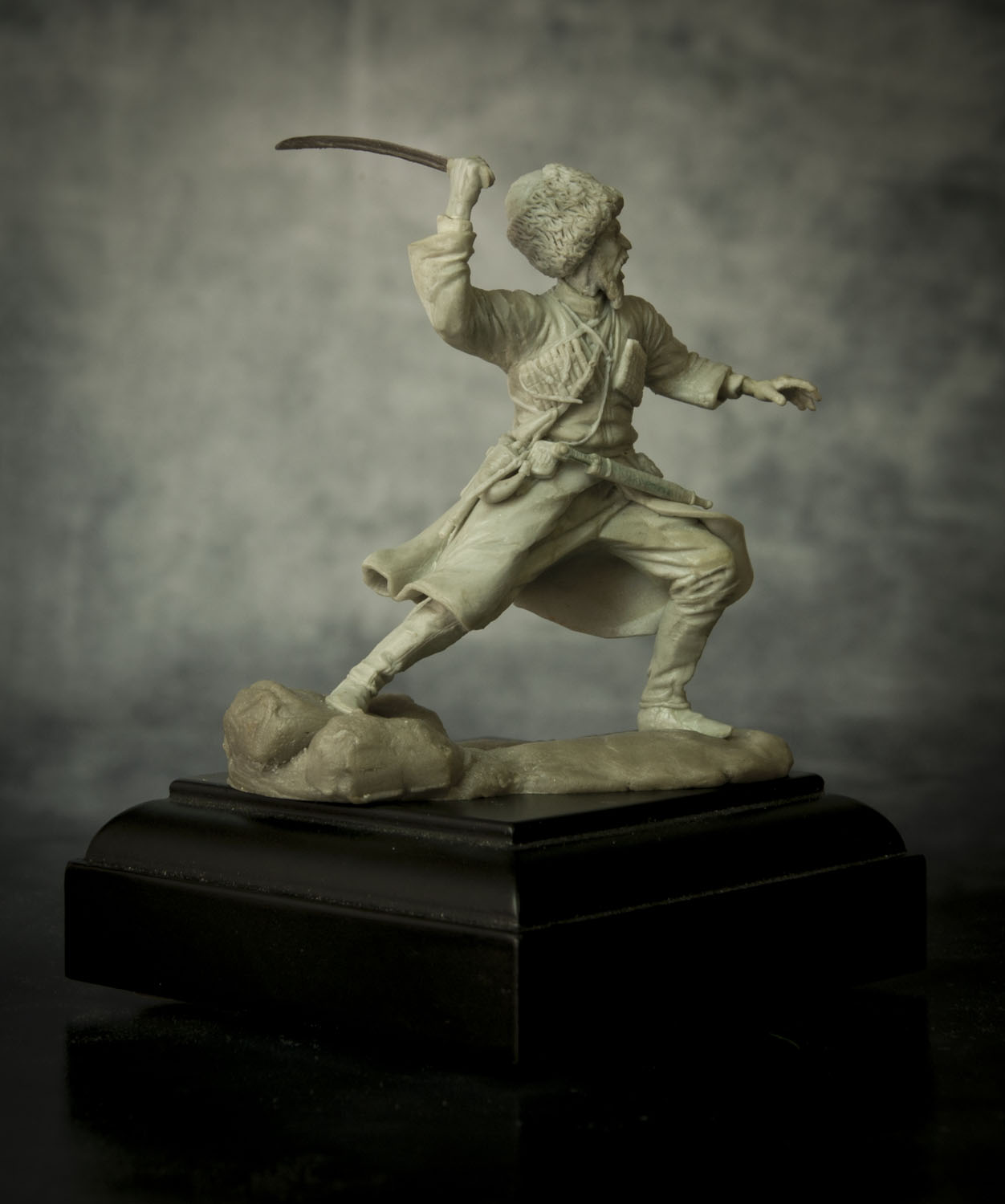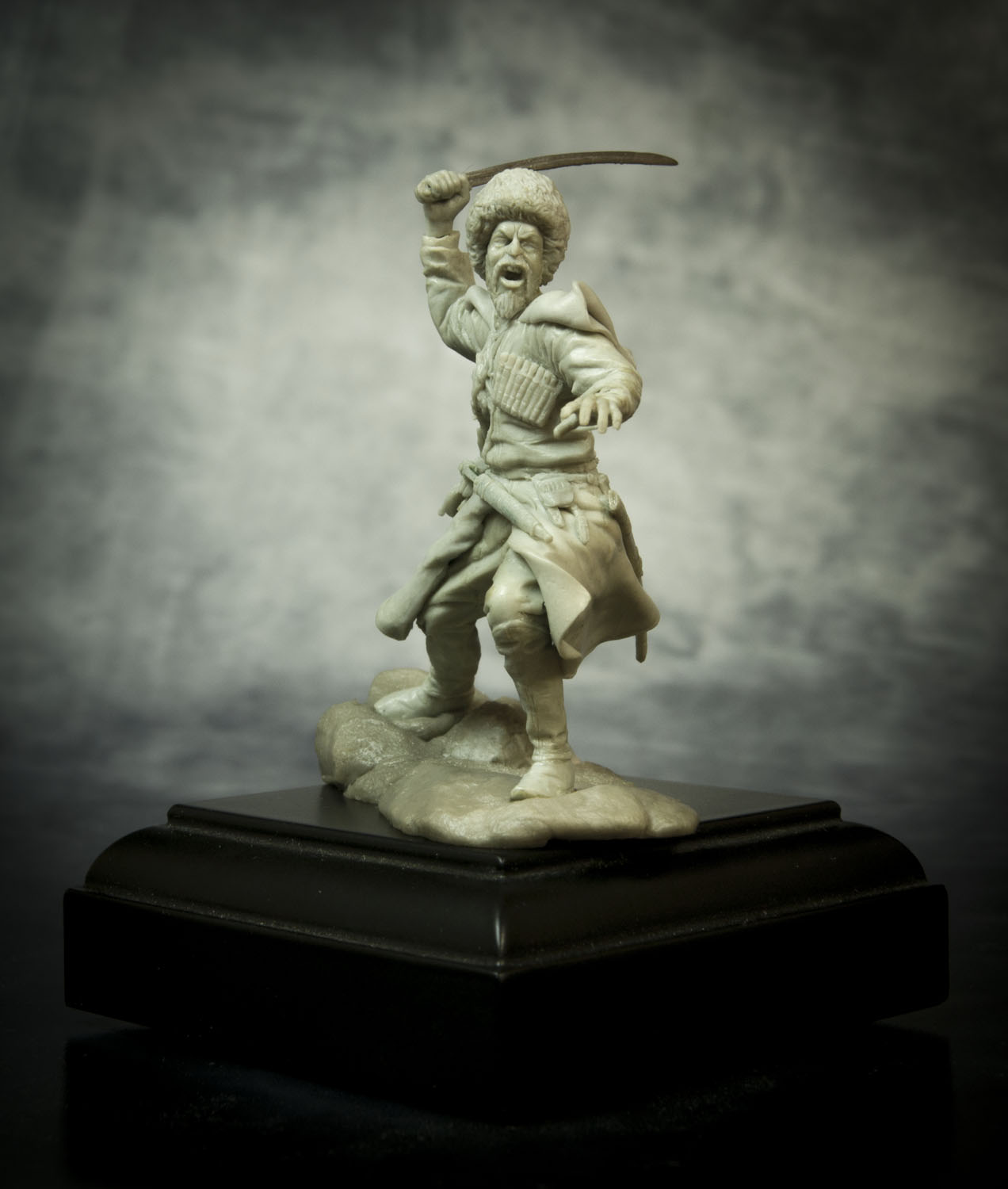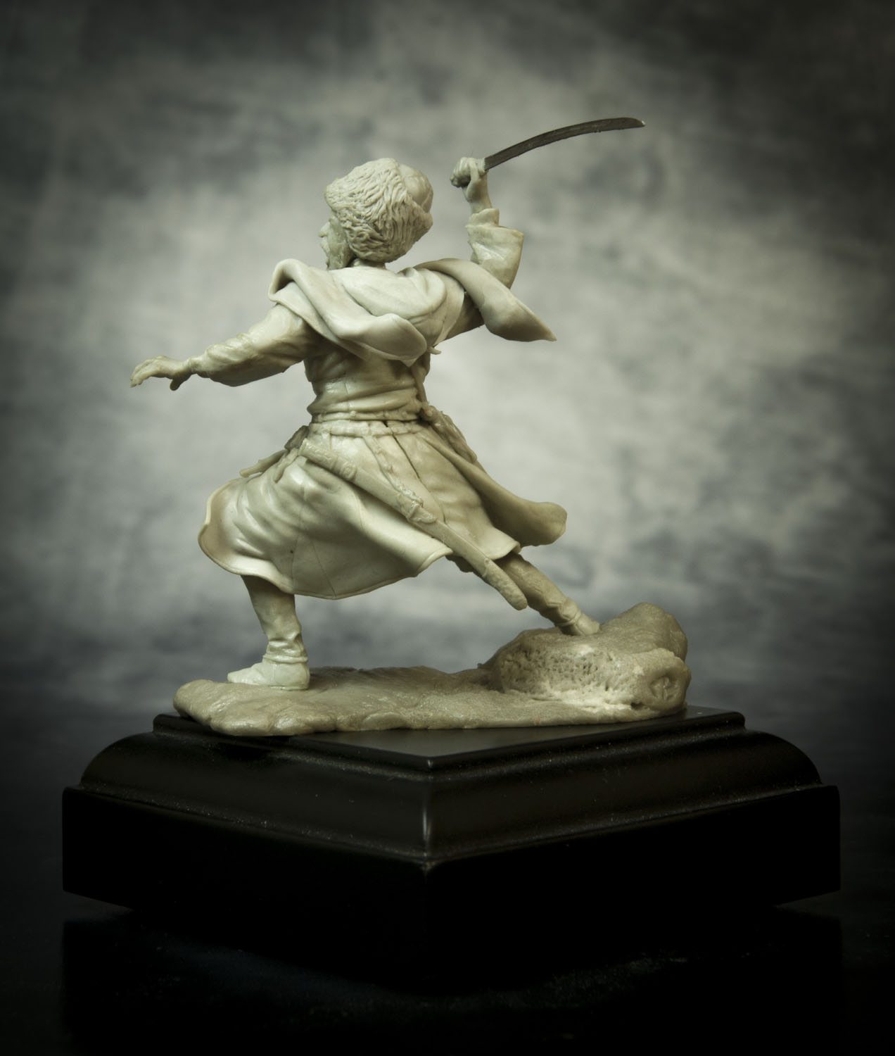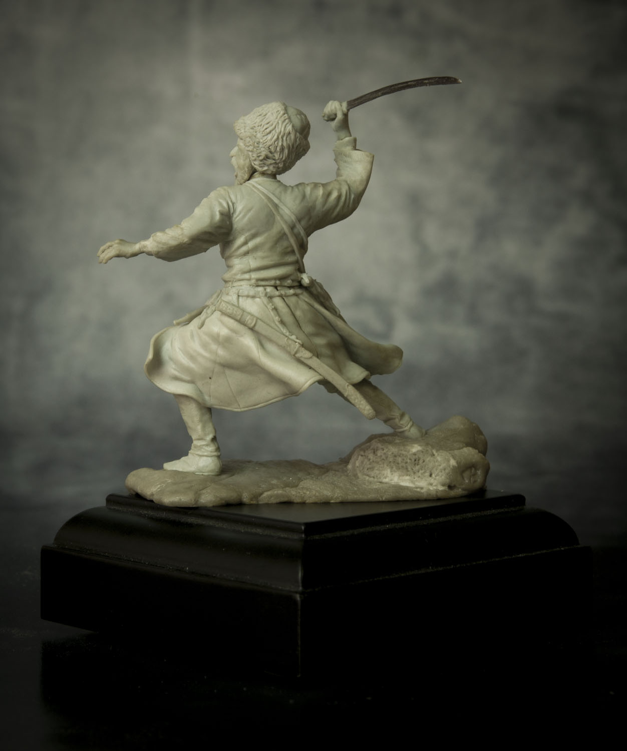 По поводу позы, поверьте, но это лучшее, что возможно было из этой позы сделать. А именно: не так давно, на другом форуме, тамошний админ решил провести конкурс - типа есть картинка, некоего Captain Orlando Ruben Mendoza, вот участники ее и будут лепить, с как можно наибольшим соответствием именно оригинальной картинке, вот только эпоху и персонажа можно было выбрать на свое усмотрение. К сожалению на картинке поза анатомически ошибочна. Картинку, того самого то ли паралитика, то ли того, кому только что судорогой спинные мышцы свело, то ли того, кого только что пчела промеж лопаток ужалила, я прикрепляю ниже, дабы вы сами смогли оценить, что на тех условиях, с максимальным соответствием позы, это действительно лучшее, что с такой позой можно было сделать.Игорь Немилов Wrote: Поза неестественная. Создаётся впечатление, что разные части тела движутся несогласовано. Замах неправильный. Положение левой руки нехарактерное. (Если бы в ней был кинжал!..)