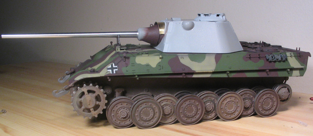 У меня не было возможности красить и я начал собират F-ку, вот прикололся и посатвил башню на G-шное шасси. Сначала даже башня показалась инородным телом. Поскольку визуально она сильно уменшилась по сравнению со стандартнои, хотя внутреннии обьем остался почто такои же. Немецким конструкторам удалось значительно увеличит бронирование башни при том что весит она стала даже немного меньше чем стандартная.
