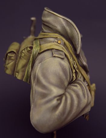 "Чтобы не заказывать бюсты,решили оттереть старый.Этот немец был раскрашен в декабре 2009г.Темпера ПВА,эмаль-металлики.Фотоссесия на память".