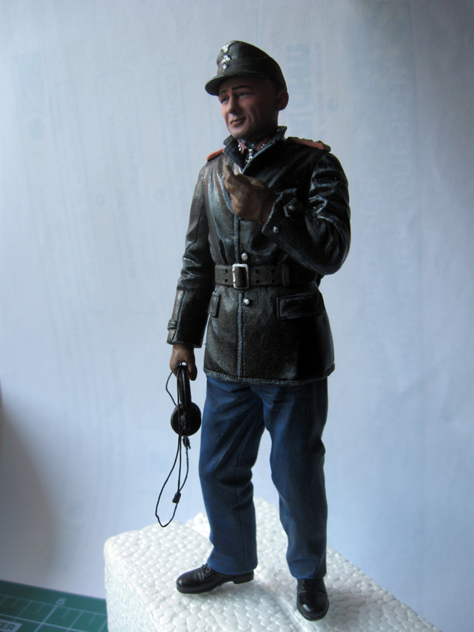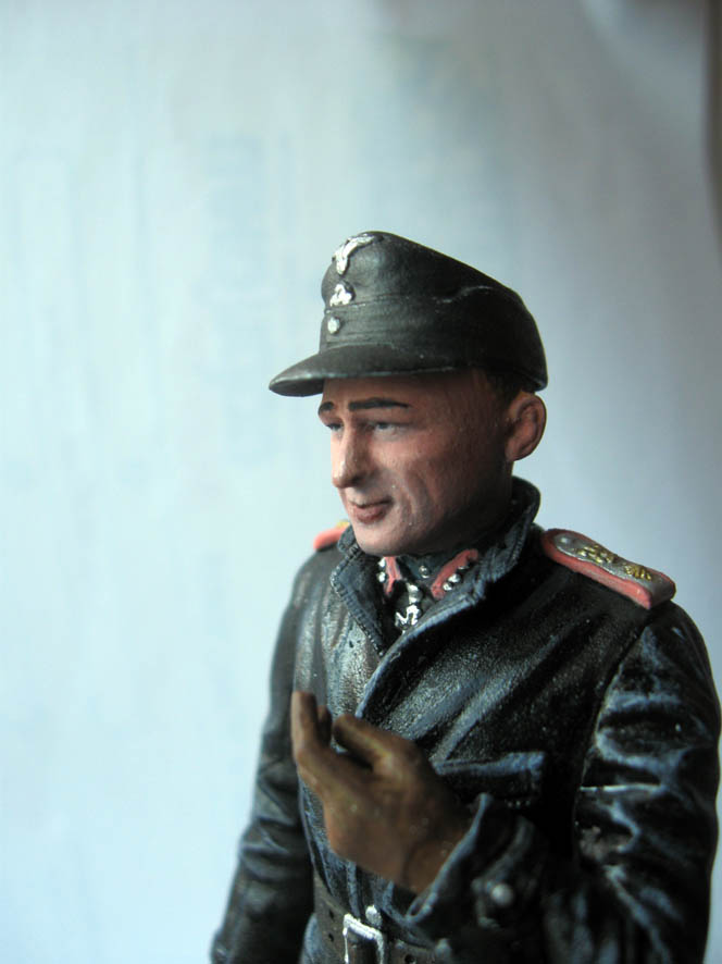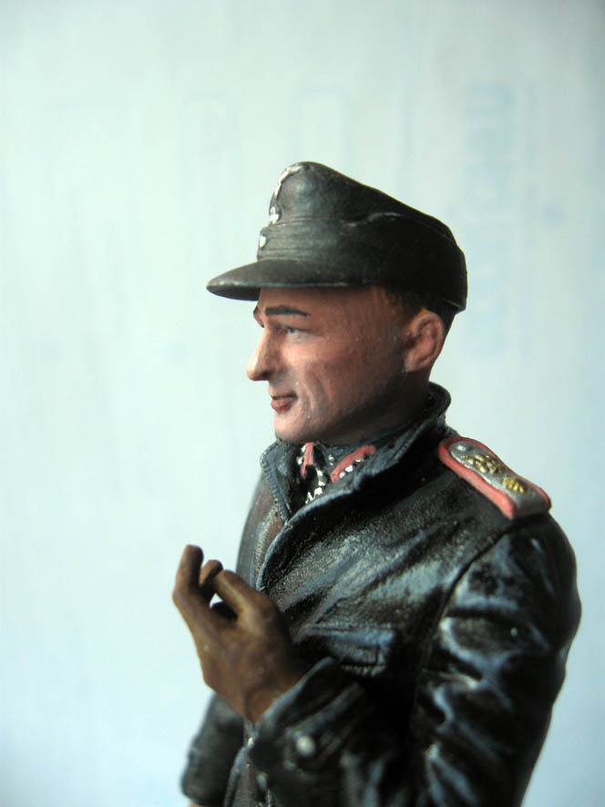 Сергей, с учетом того, что твой Виттман - уже фигурка (как бы здорово ее не раскрасить), а не живой человек, танк нужно окрашивать хотя бы также, как на приведенном мною фото, а то и может быть еще более стилизованно. То есть локальные цвета и никаких смывок тонировок и т.д и т.п. А еще лучше часть танка оставить не окрашенными(как на фото), например ствол и ходовая с гусеницами. И уж тем более, не к селу не к городу - камуфляж. При таких размерах модели, он ее делает слишком дробной и съедает много вкусностей.