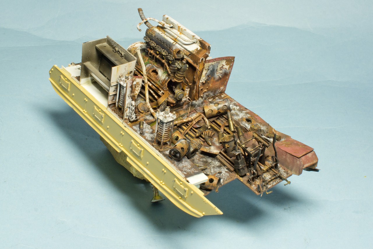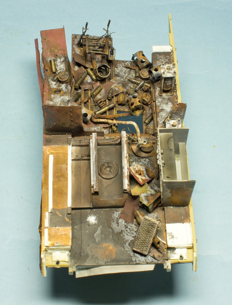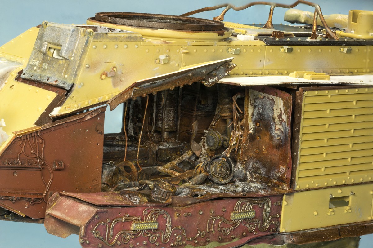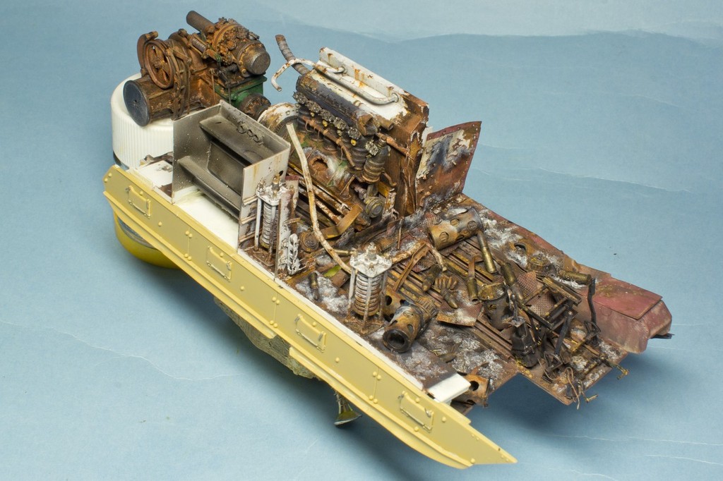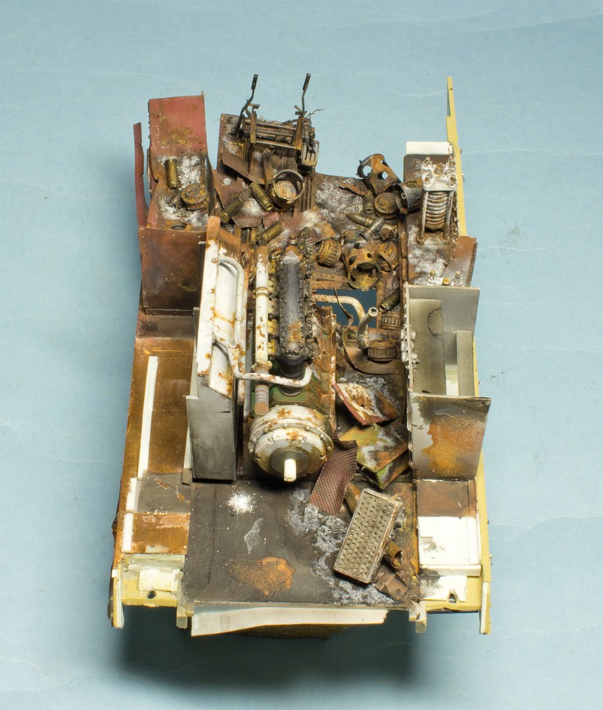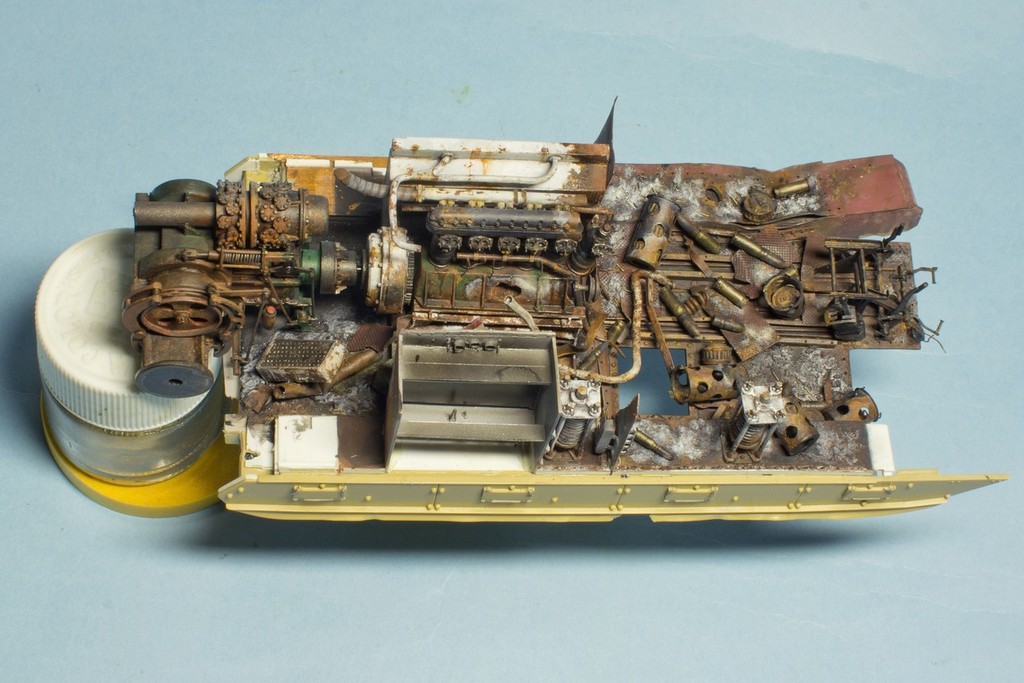 Здорово,органично смотрится.Удивительно,что при таком выгорании нижние трубопроводы и шланги не повело.Может добавить какие-нибудь порванные или перебитые?Ну это на мой взгяд,с уважением!