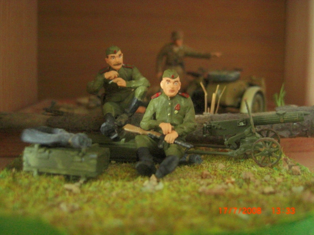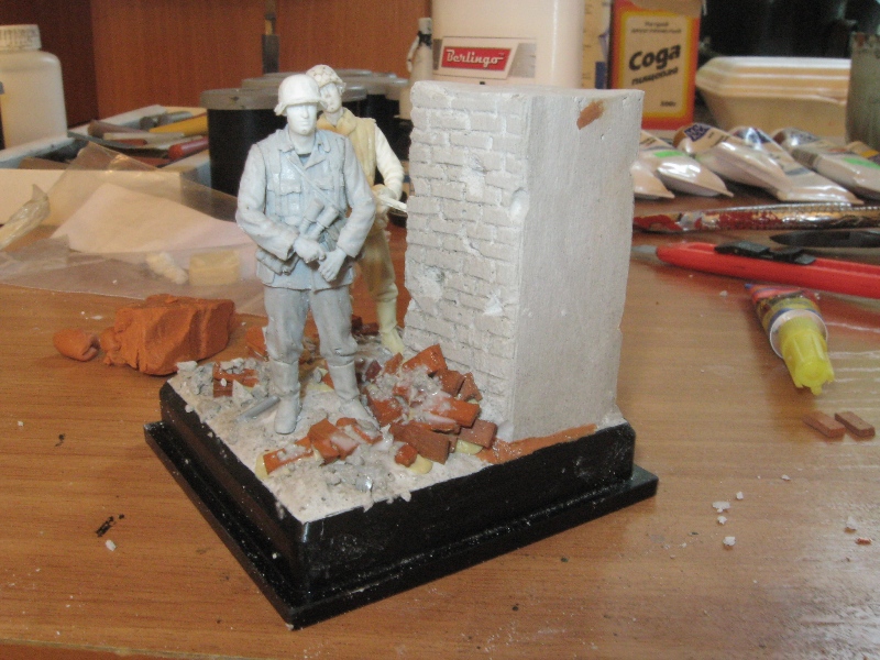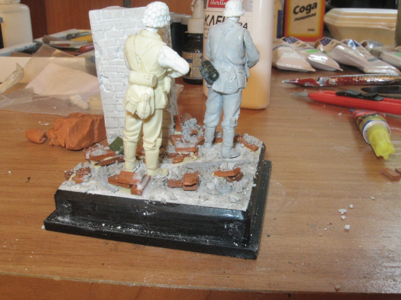 GISH, Толик, молодец, классное основание получилось, запыленное такое. Вот только можно для разнообразия и контраста добавить какую-нибудь яркую и не такую пыльную деталь - гильзы сверкающие металлом или смятую пачку сигарет или листовку сброшенную с самолета. Такая чистая и контрастирующая деталь лишь подчеркнет пыльность основания и солдат.