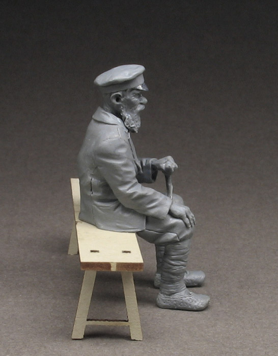Спасибо! Да, дедушка мне и самому нравится. Получил удовольствие от лепки - и персонаж интересный и лепился легко, не напряжно. Дедушка подойдет и на Гражданскую и на ВОВ, и казаком его можно сделать (хотя лапти лучше на, гм... забыл название, ичиги какие-то заменить). Поза его может показаться не интересная, но так и задумывалось - дедушка этакий статист, свидетель времени. Уходит Красная армия, приходят немцы... уходят немцы, пришла Красная армия... а дедушка всё сидит на лавочке, греется под солнышком, глядит на все эти исторические события своими подслеповатыми глазами...
