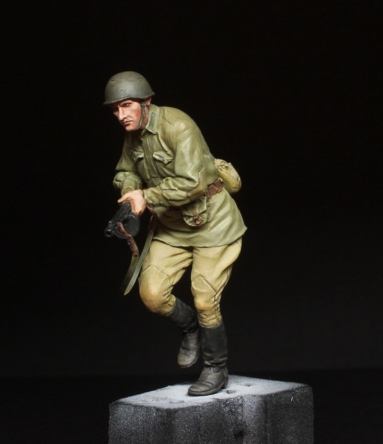 Всем привет! Работаю сейчас над фигуркой бойца РККА от "Танк" (второго из набора). В принципе дело близится к концу, осталось только убрать недочеты выявленные при съемке. Использовал для окраски лица тематический набор от АК, позже поделюсь своим скромным мнением.