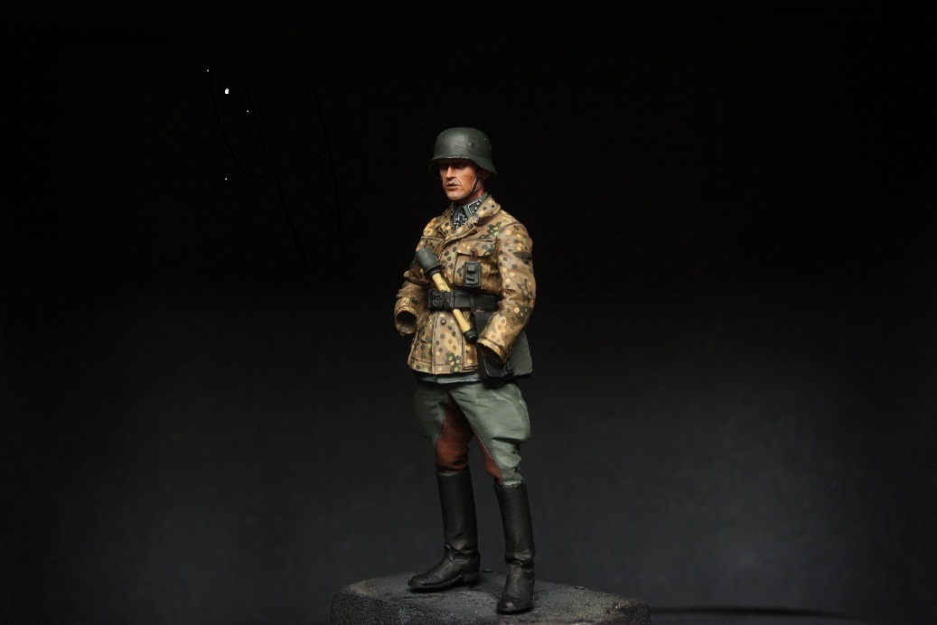 Кристиан Боди интересного типа слепил - СС-кий унтер в кавалерийских бриджах в покрое на начало войны и камуфлированной куртке М-44 поверх кителя. Даже кавалер рыцарского креста.