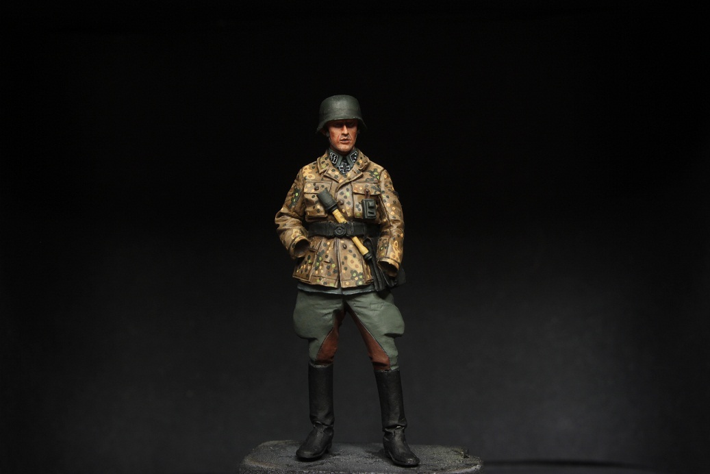 Давно не работал с камуфляжем,немного навык растерял. Оцените коллеги как выходит. Фигурка в процессе что-то можно подправить. Сама фигурка от Мантис, только голова Альпайновская.