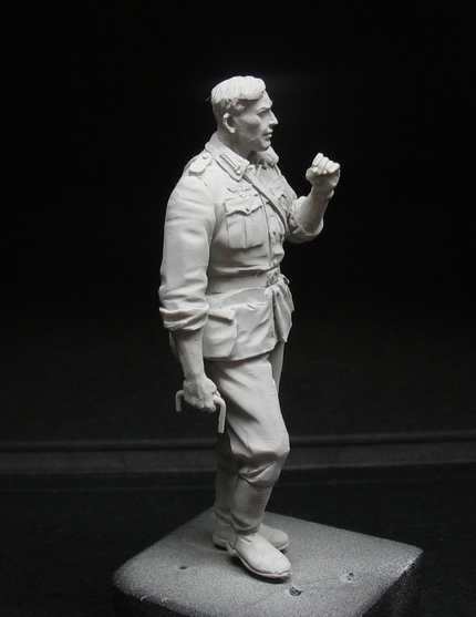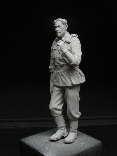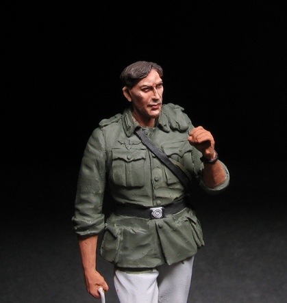 С фигурами этой фирмы я уже работал (это были бойцы РККА расчет противотанкового ружья) они мне очень понравились - детальная проработка, прекрасные позы итд. вобщем 5 баллов. Поэтому я с нетерпение ждал когда Саша сваяет немцев. Из 10 фигурной серии немцев в бою я выбрал себе расчет МГ набор S- 3063 и командира расчета (см. выше)