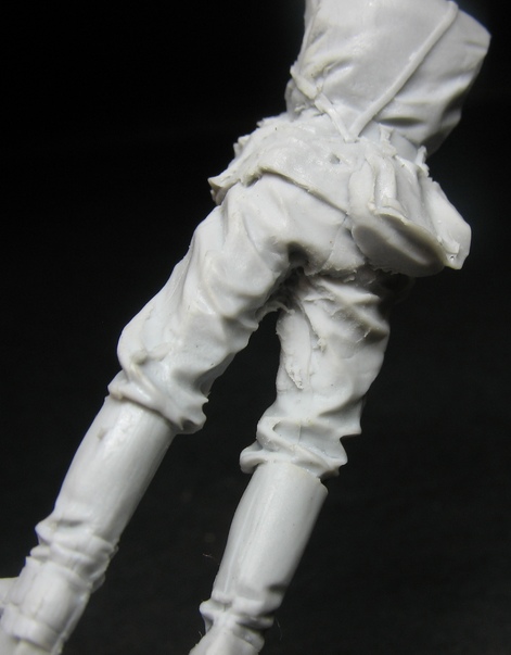 Второй недостаток - качество литья. Не перестаю бороться с этим на фигурах от " 1 легиона" Думаю дай отдохну, ага щас - недолив подсумка к МП. Это теперь его надо аккуратно срезать и заменить на новый. Благо у меня этого добра в запасниках немеренно, а кого нет? Конечно все это устранимо, только нужно опять же приложить руки. И вообще подсумки немного невнятные какие то вышли левый недолив, правый смещение. На фигуре отлиты награды это хорошо, но рельеф не четкий, опять же под замену на травло. Ну и сзади