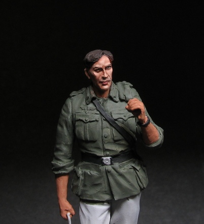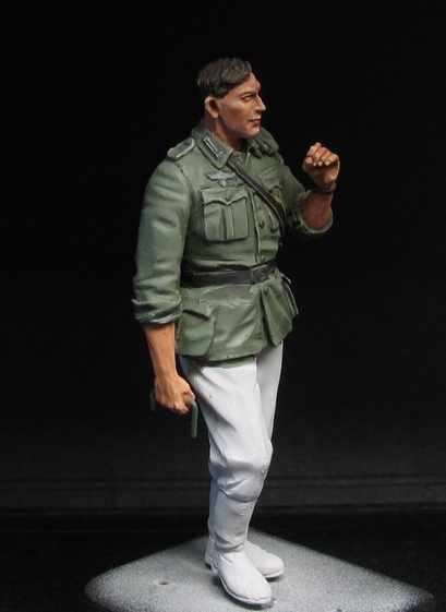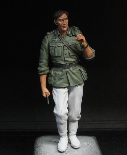 "Реинкарнировал" немца от "Танк". Одна из первых моих "танковских" фигурок была окрашена еще в 2006 м. Так как сама фигурка мне нравится, решил ее перекрасить. Отмыл в "кроте" доделал доп. ремешки из фольги, добавил травленые награды и знаки различия. Еще не решил поставить на отдельную подставку или сделать небольшую виньетку, поэтому пока на пробке.