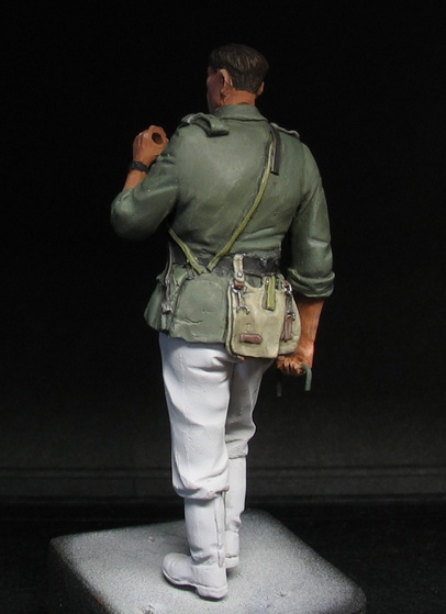 Решил проявить силу воли и покрасить "второго" немца из набора Танк №35077. Как я уже писал ранее, обычно одна из фигур нравится больше. Поэтому пулеметчик уже давно красуется на полке, а вот до 2 номера вдохновение добралось только вчера. Фигурка загрунтована, ничего практически не добавлял так как Y портупеи на фигурке нет, награды будут не видны из-за положения левой руки да и еще вдобавок там проходят оружейный ремень и ремень от противогаза. добавил только травленые петлицы.