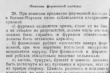 Так же привожу вырезку скана из этого же документа о ношении форменки под фланкой. Подобный текст уже приводился выше.