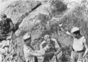 (посмотрите на разорваный или растегнутый рукав фланки). Фотография запечатлела раненого краснофлотца попавшего в плен. место действия не известно. Может кто признает родные пенаты?
