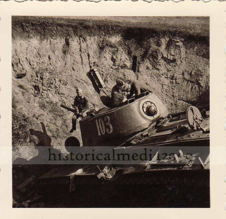 Алексей NN, вот, пожалуйста. По-видимому 1942 год и по-видимому южный сектор советско-германского фронта. Интересно что номер 103 на башне с одной стороны написан по трафарету, а с другой от руки. По-видимому ещё на корме номер мог быть.