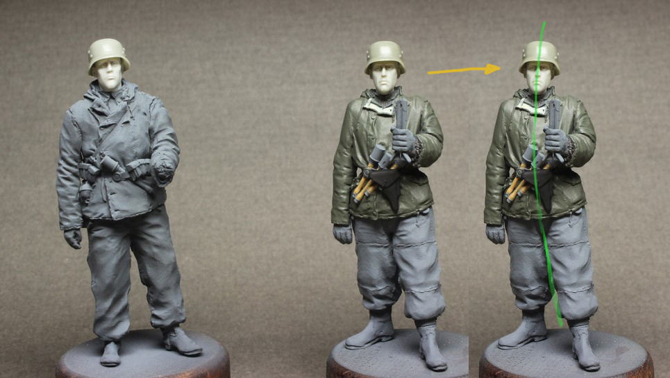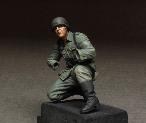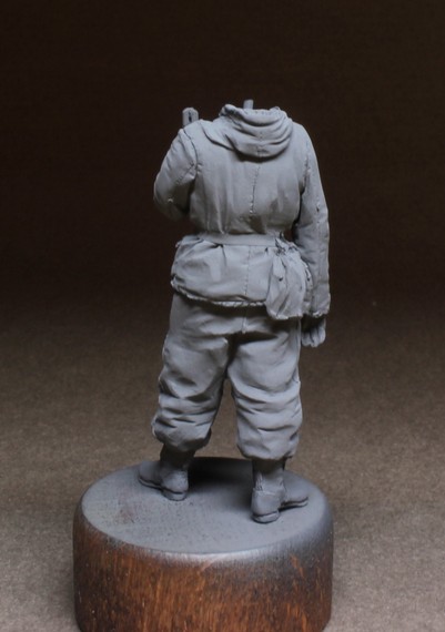 Грунтовка как обычно Тамия. Проработка складок, швы - все на уровне. Саша скрупулезно относится к лепке униформы, такие мелочи как пуговицы на рукавах для крепления опознавательных лент и прочие "элементики" радуют.