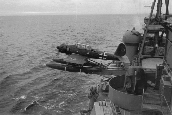 Вы бы хоть фото "Бисмарка" посмотрели, прежде чем кричать - "это-же "Бисмарк"!!! Какие самолеты?"!!!" Был он на "Бисмарке",был. И на нашем крейсере "Киров" были 2 самолета-разведчика. Палубной такую авиацию назвать язык не поворачивается - запускались самолеты с катапульты, прием самолетов осуществлялся краном-балкой с воды. Как-то так.