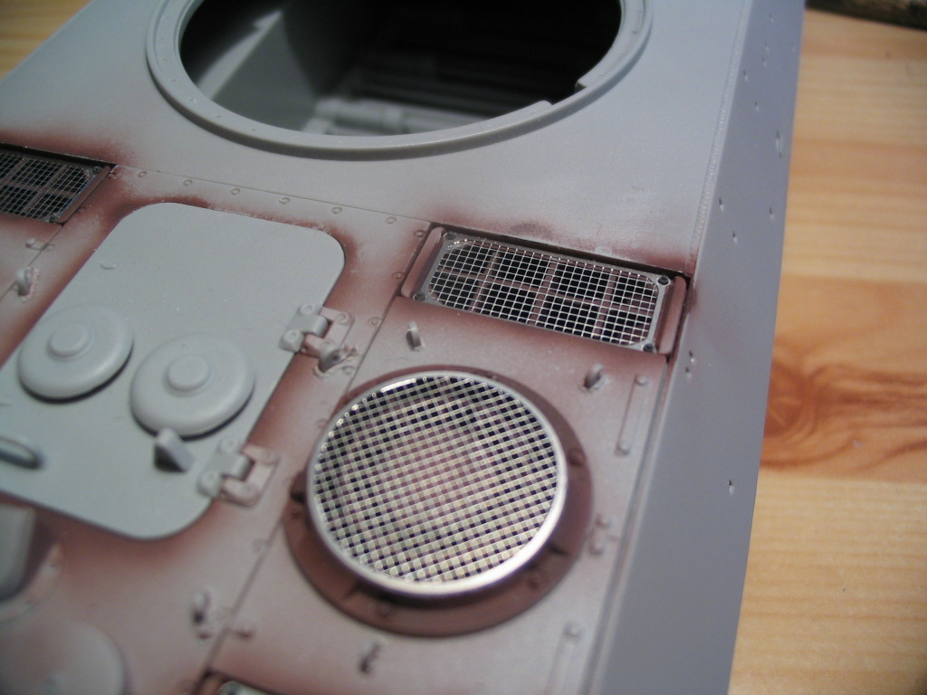 На самом деле это первая деталь на которой я имитировал литьё. Я же раньше собирал только Тамию, а там фактура литья и так великолепна. Пробовал по разному. Сначала попробовал жидкой шпаклевкой, не понравилось, затем задул тамиевской грунтовкой и пока она не высохла практически сразу, отложив аэрограф обмакнул в 646 растворитель жёсткую постриженную кисть и начал тыкать. Получилось грубовато и я решил сгладить не шкуркой а мягкой кистью обмакнув в 646 растворитель начал аккуратненько приглаживать и получилось достаточно правдоподобно, даже и не знаю смогу ли повторить снова..