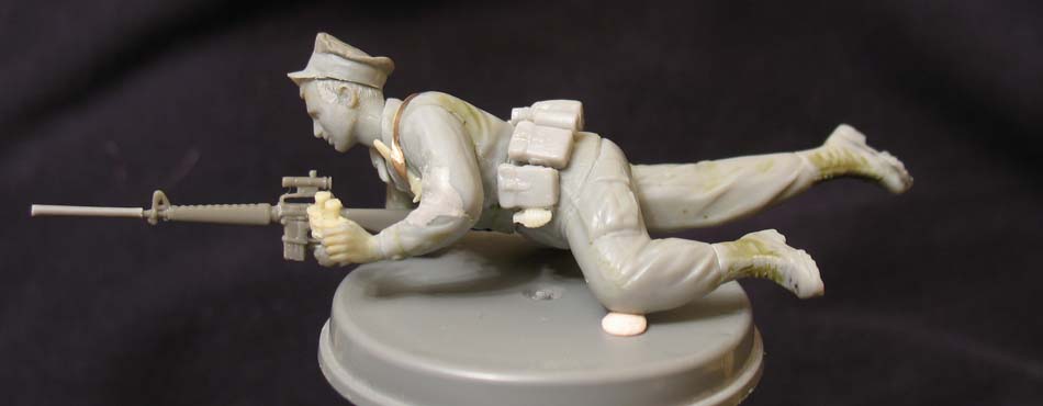 Вот наконец добрался до фигурок. Американский экипаж для джипа и военная полиция, хотя нарукавные ленты были срезаны вместе со свистком, поэтому два полицейских будут играть роль пехотинцев. Начал с росписи лица, дабы вспомнить что это вообще такое. Вспоминается с трудом.