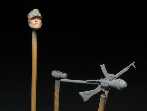 Загрунтовал голову и мелочевку, для удобства окраски закрепил все это на зубочистках.