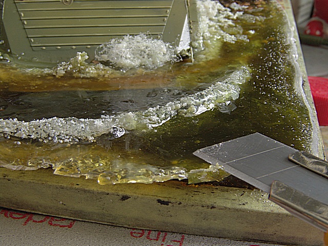 Однажды на форуме прозвучал вопрос о том как бороться с краем "водиной"поверхности.Дело в том что эпоксидка даёт усадку и поверхность выглядит как тарелкой.