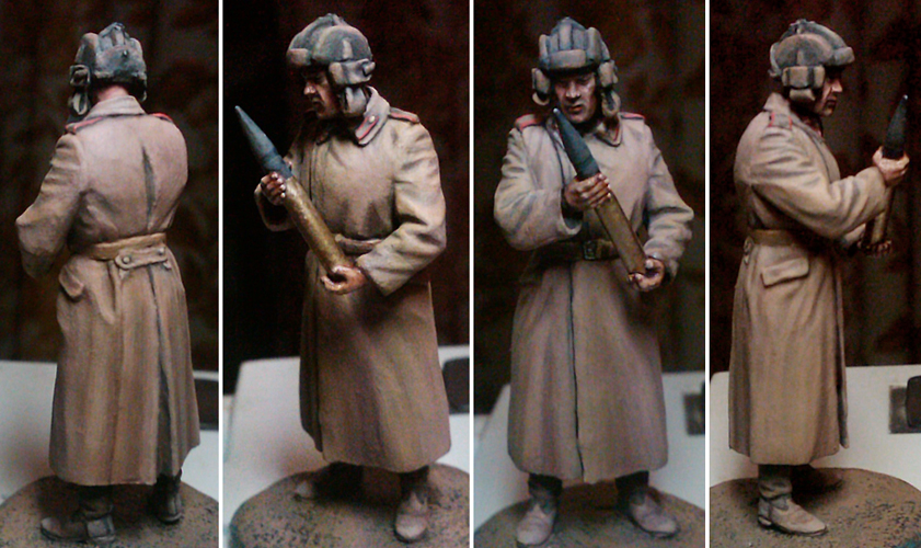Доброе время суток! Не знаю на какой стадии покраска, но ниже пояса шинель..несколько небрежно...переходы между темным и светлым!