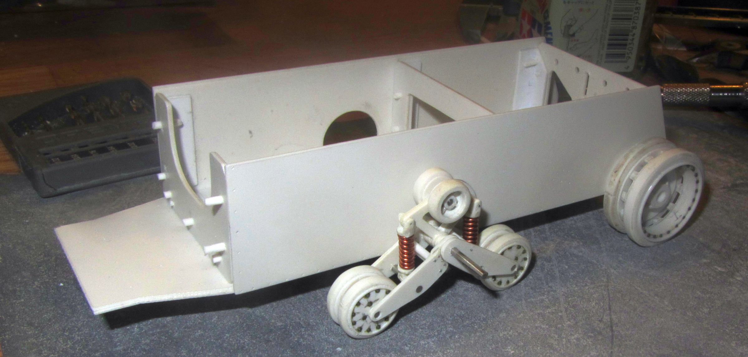 - заставить себя собрать большой кусок гусеницы, дабы выверить растояние между задними колёсами и бортом кузова;