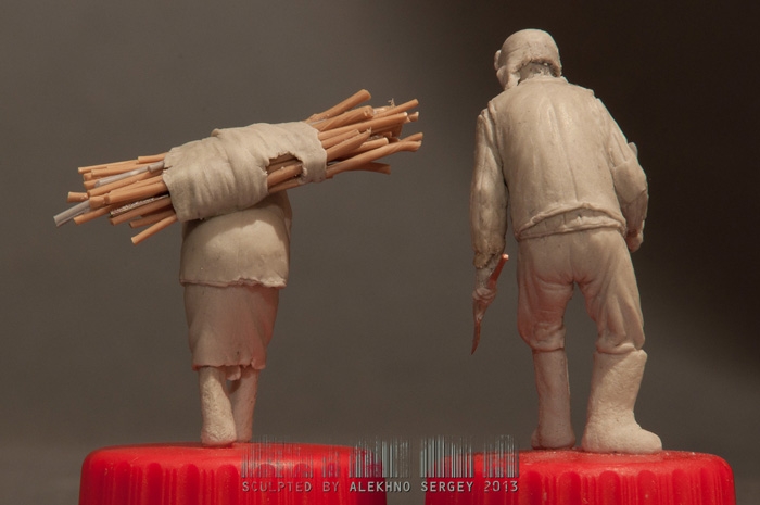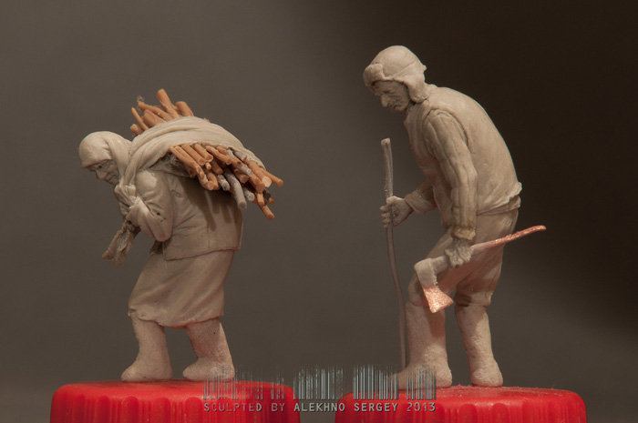 Решил слепить дедушку с бабушкой, идущих, с вязанкой хвороста. Готовность 90%