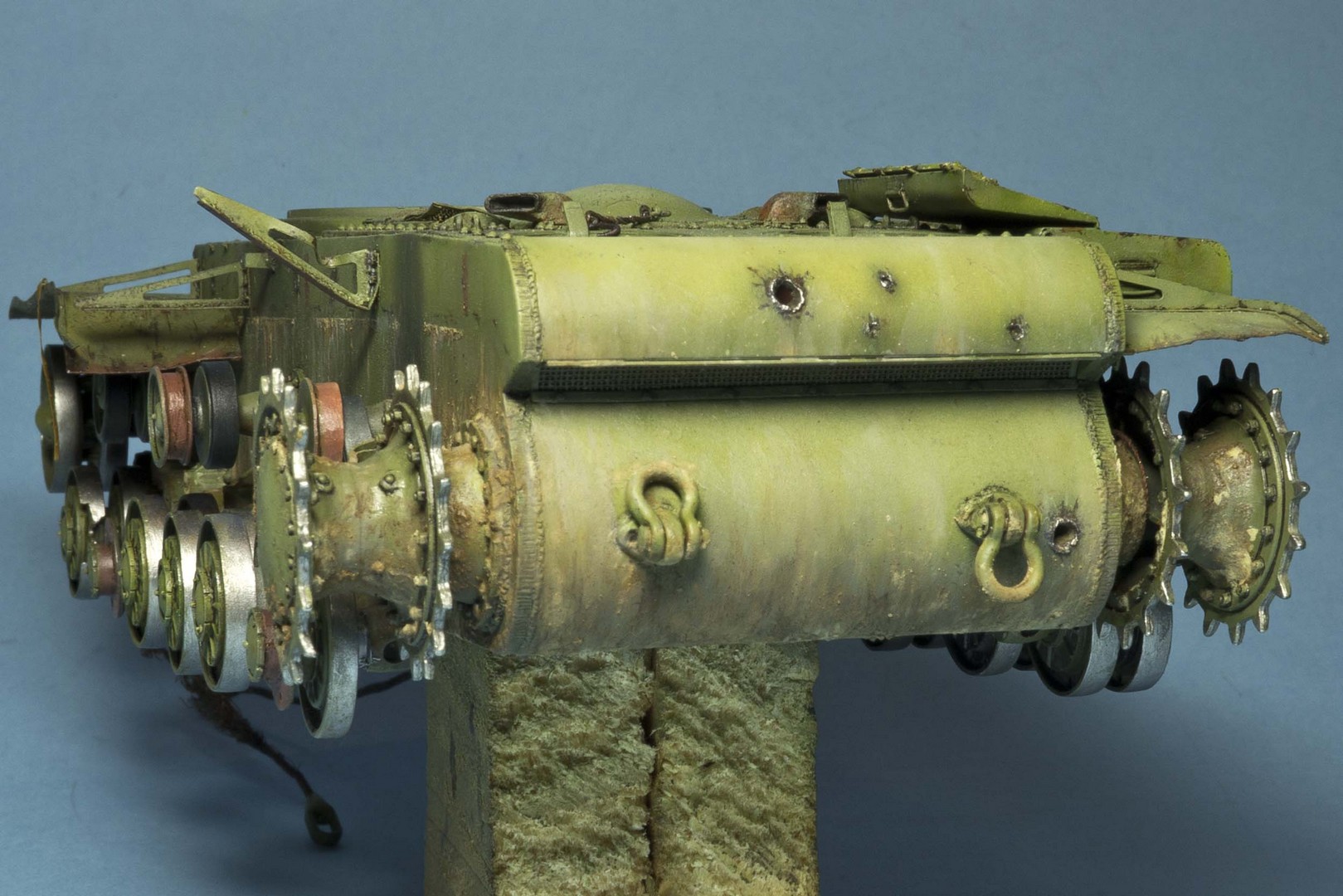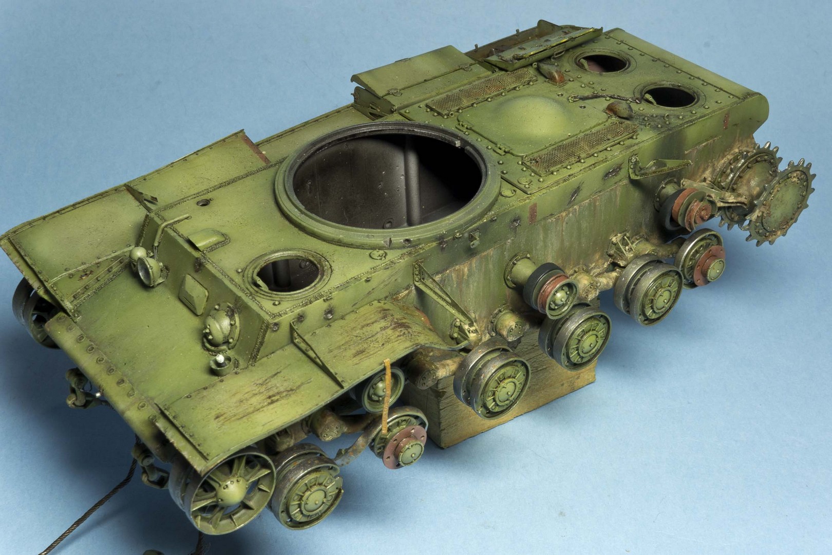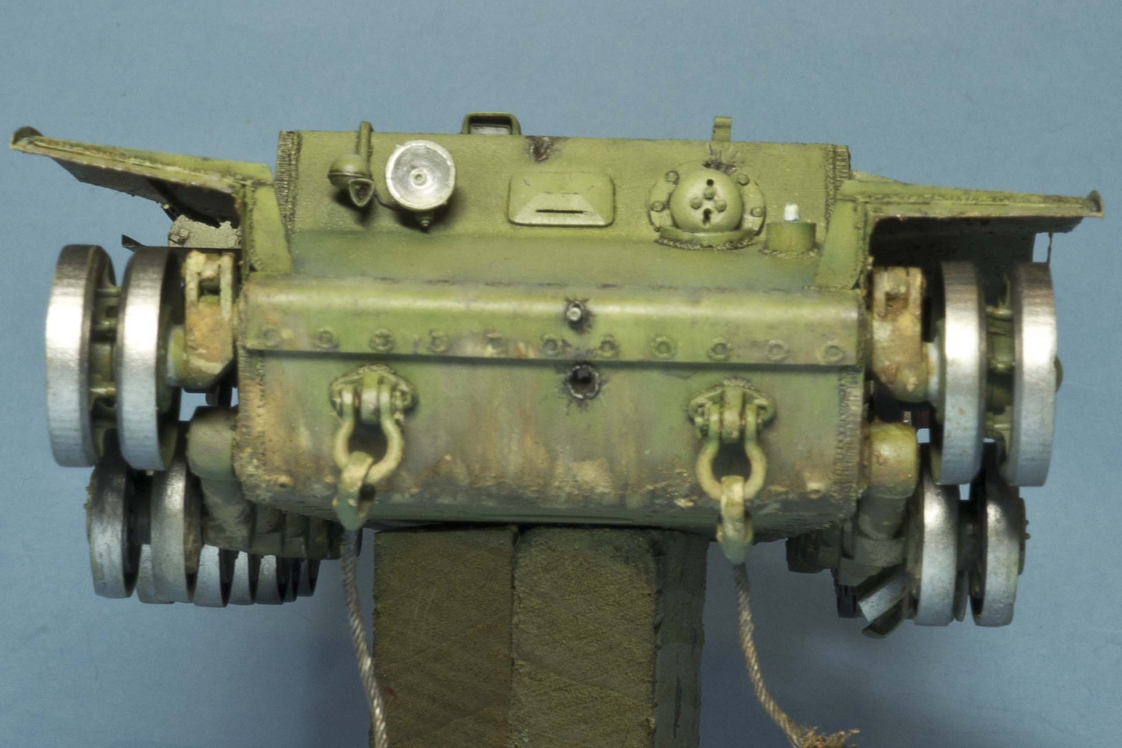 tankist, Спасибо за фотографии! Выходит трансмиссию и двигательный отсек красили в светло-серый? У меня в голове почему-то застряло, что красили только грунтом (сурик).... А это не могли финны покрасить после захвата танка? Надо будет подумать как исправить, ибо все уже приклеено