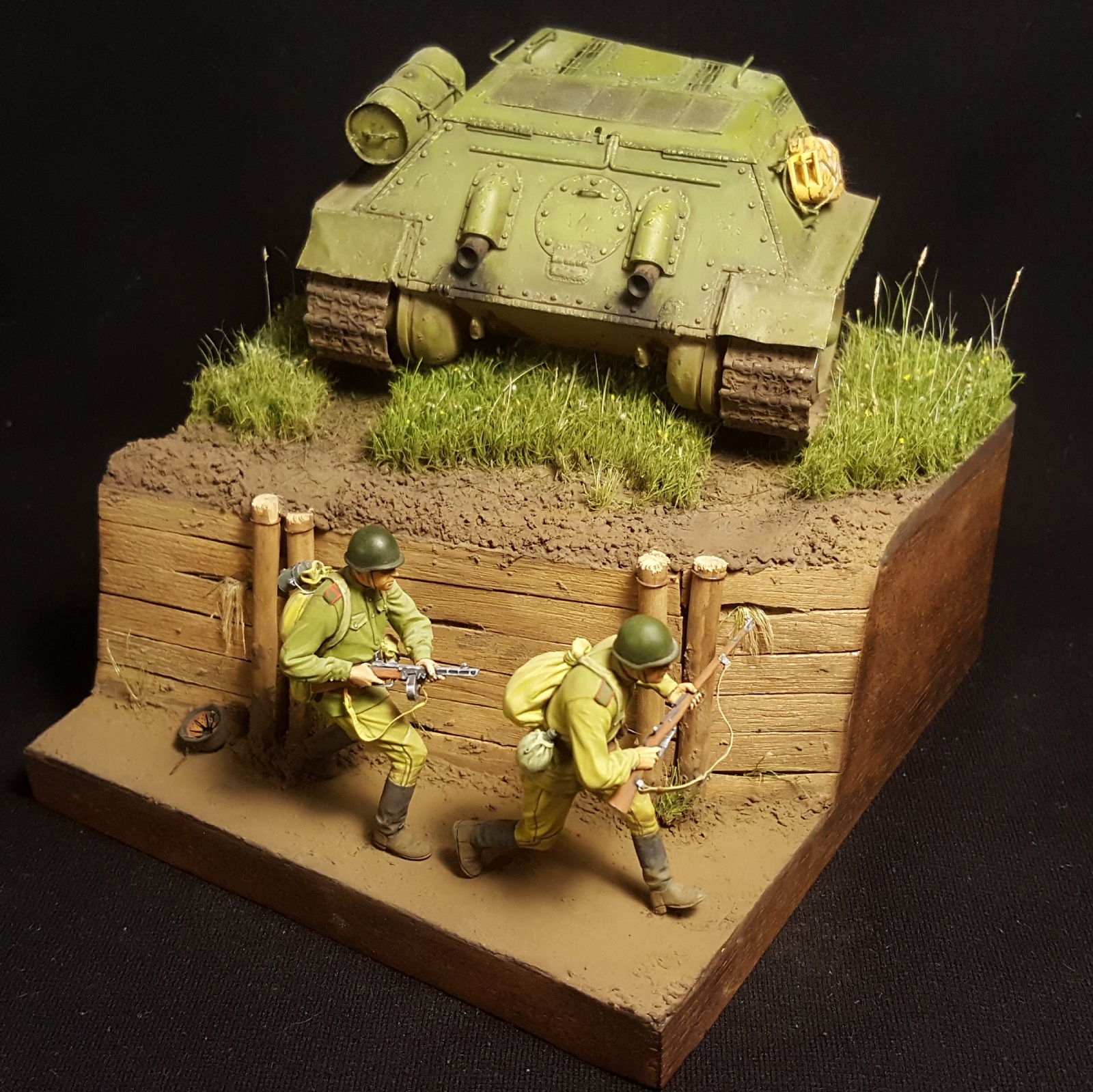 Второй персонаж готов, получился вот такой вот сержантик. Гимнастерку решил сделать другого оттенка и добавил трофейный котелок на вещмешок. Осталось доделать основание и мелочевку.