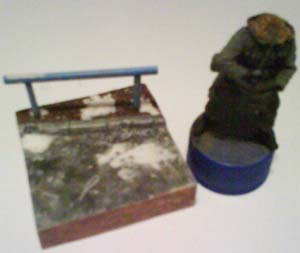 ) - черный берет с алым общевойсковым флажком и танком на боку, черные (неношеные, цвета "воронова крыла") танковые бушлат и штаны, и обрезаные хромачи. Издаля, вылитый морпех, особенно для солдат с карантина