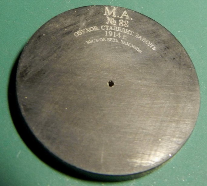 Пока ожидаю окраски начинаю новый большой проект. Может даже закончу его.305 мм. береговая пушка на открытой установке (журавле) из форта Красная Горка в Питере.Чертить начал ещё года 1,5 назад. Решил делать параллельно с чертежами. Ещё в прошлом году сделал "таблетку" на казённую часть с надписью. Делалось лазерной резкой. Для фото припудрил тальком. Выточил ствол из двух частей. Дюраль и эбонит. Приклеил нашлёпку сзади. Длина ствола, как видите 45 см. Масштаб 1:35