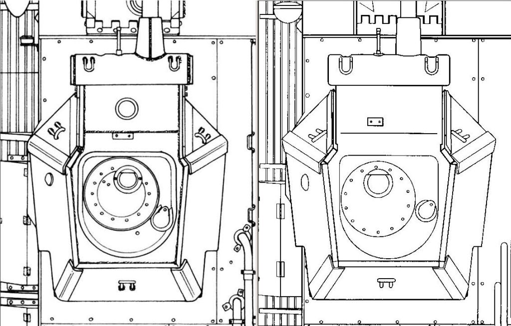ключ, сама башня асимметричная - скосы башни к маске пушки слева и справа неодинаковы. А пушка в маске понятно, что со смещением располагается.