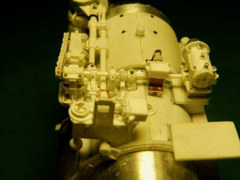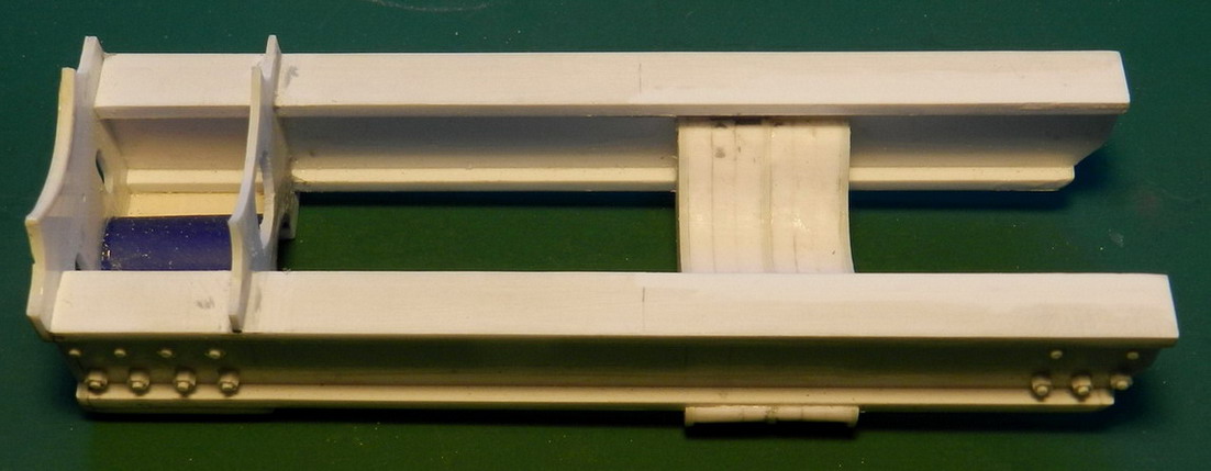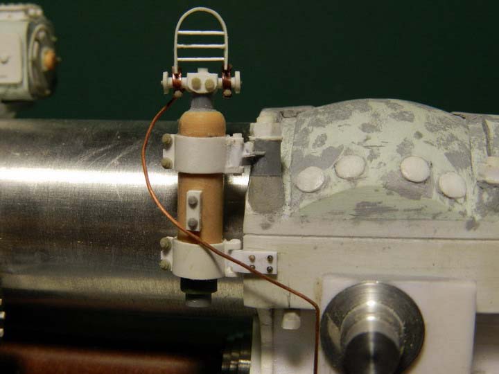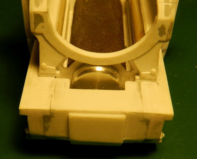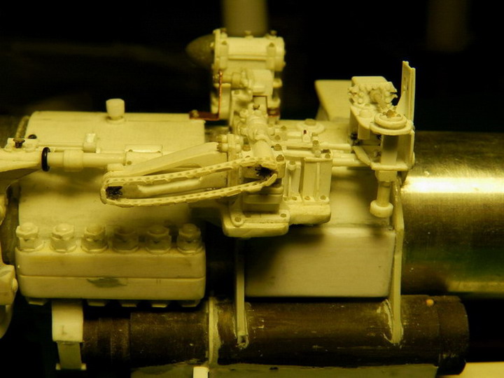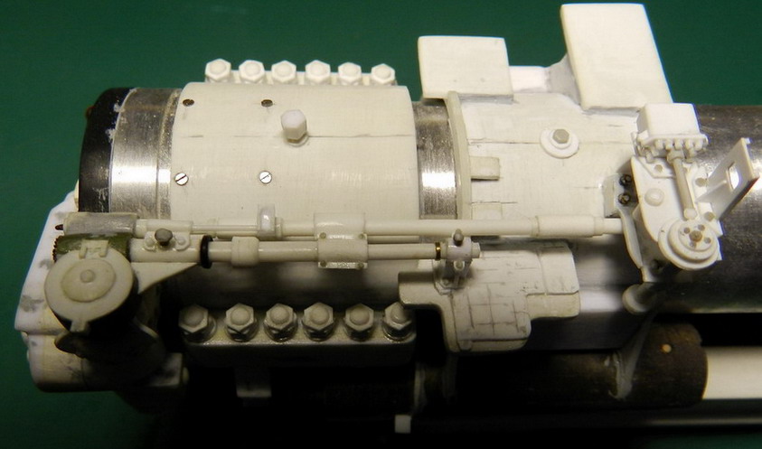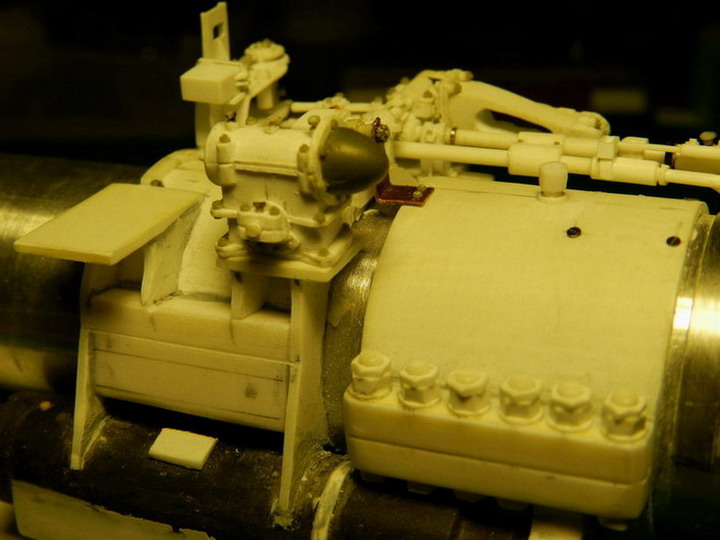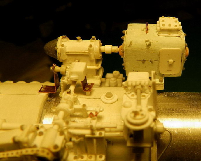 Нагородил под казённой частью на люльке детали отката и наката ствола. Из эпоксилина сделал нашлёпку для будущей верхней цельнолитой части передней обоймы. Потом отсеку лишнее.