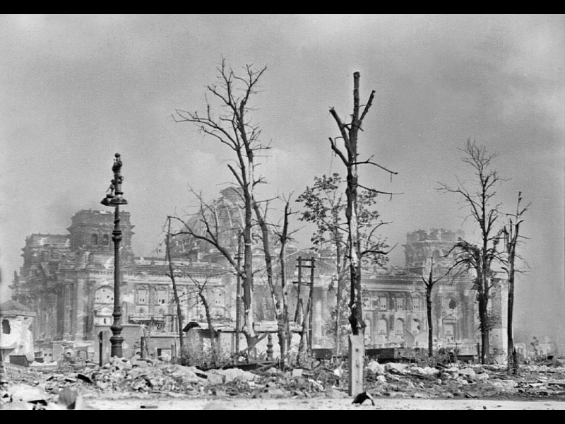 А по-моему хорошее решение с деревом, стоит брать пример. "Укороченные" бомбёжкой деревья - это вариант, но не делать же такими все деревья на диорамах... Во-первых, в основном они приобретают такой вид при длительной и мощной бомбардировке, когда на всё вокруг тоже без слёз не взглянешь, а здесь местность без особых повреждений. Во-вторых, даже то, что остаётся после бомбёжек - это далеко не пеньки. На приложенных фото деревья в 2,5-3 старорежимных (полноценных) этажа и выше. И это более тонкие деревья.