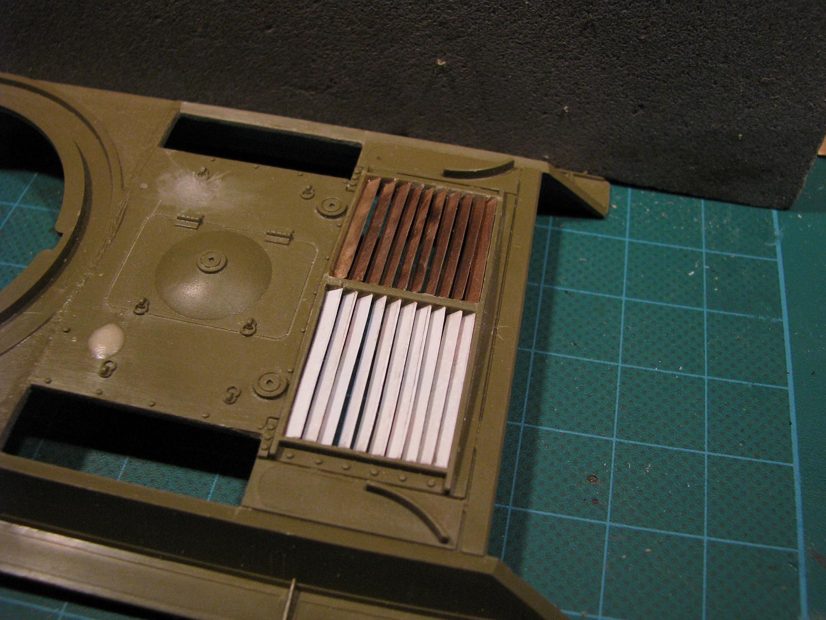 Поэтому, самодельные детали из "доширачного" пластика грунткю тамиевской х-10.