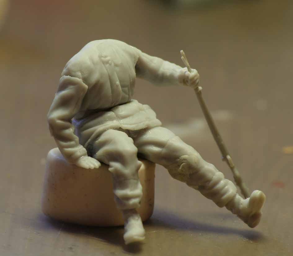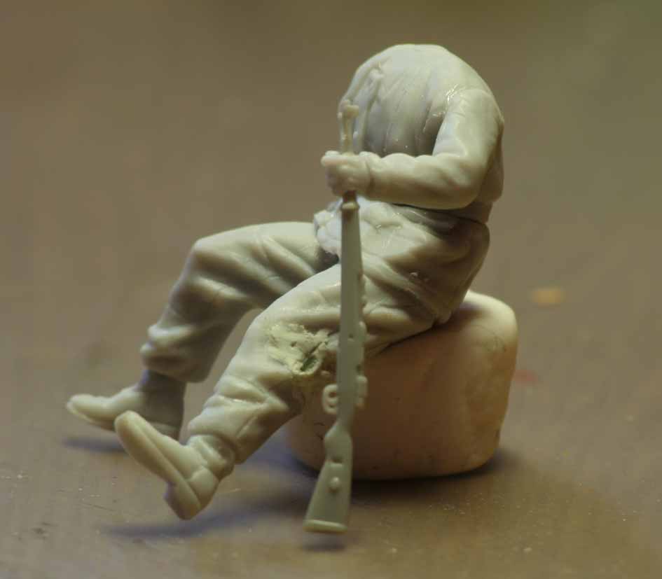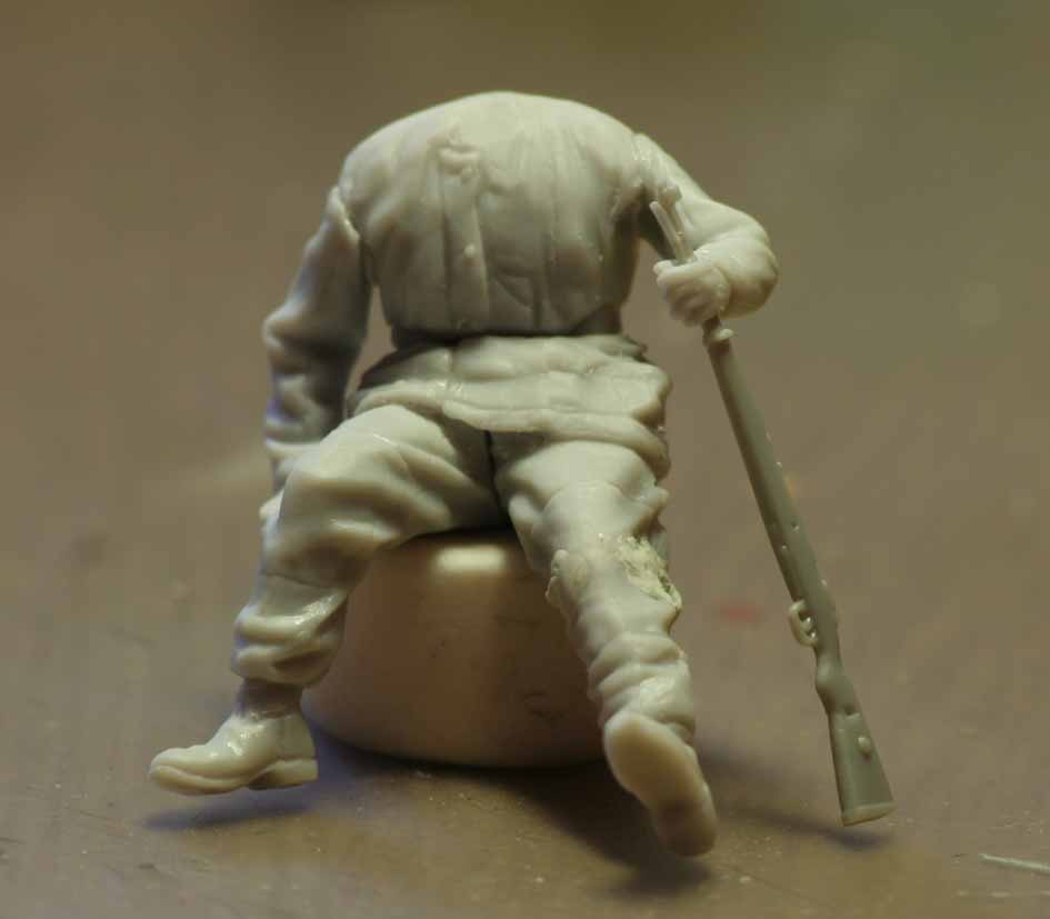 Я вот хочу сделать раненого бойца, который опираясь на свой карабин пытается подняться...