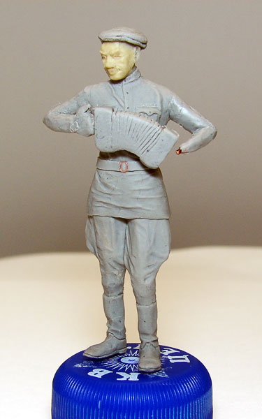 Первый опыт в скульптуре солдат-баянист 1:35. Конечно, еще не полностью сделан, но уже стоит на ногах .