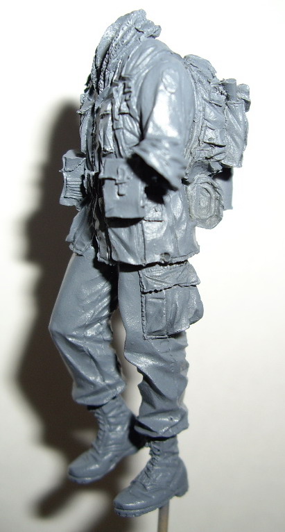 Фигуренция загрунтована тесторовской грунтовкой. Обнаружилась небольшая "каверна" на левом нижнем кармане кителя.Успешно лечится капелькой суперклея с содой.