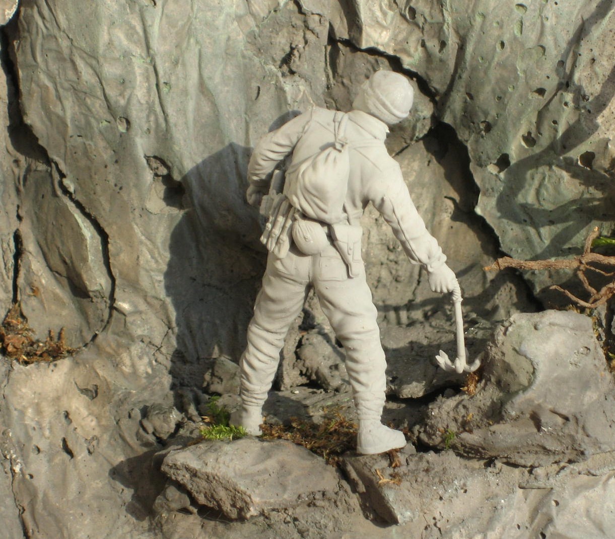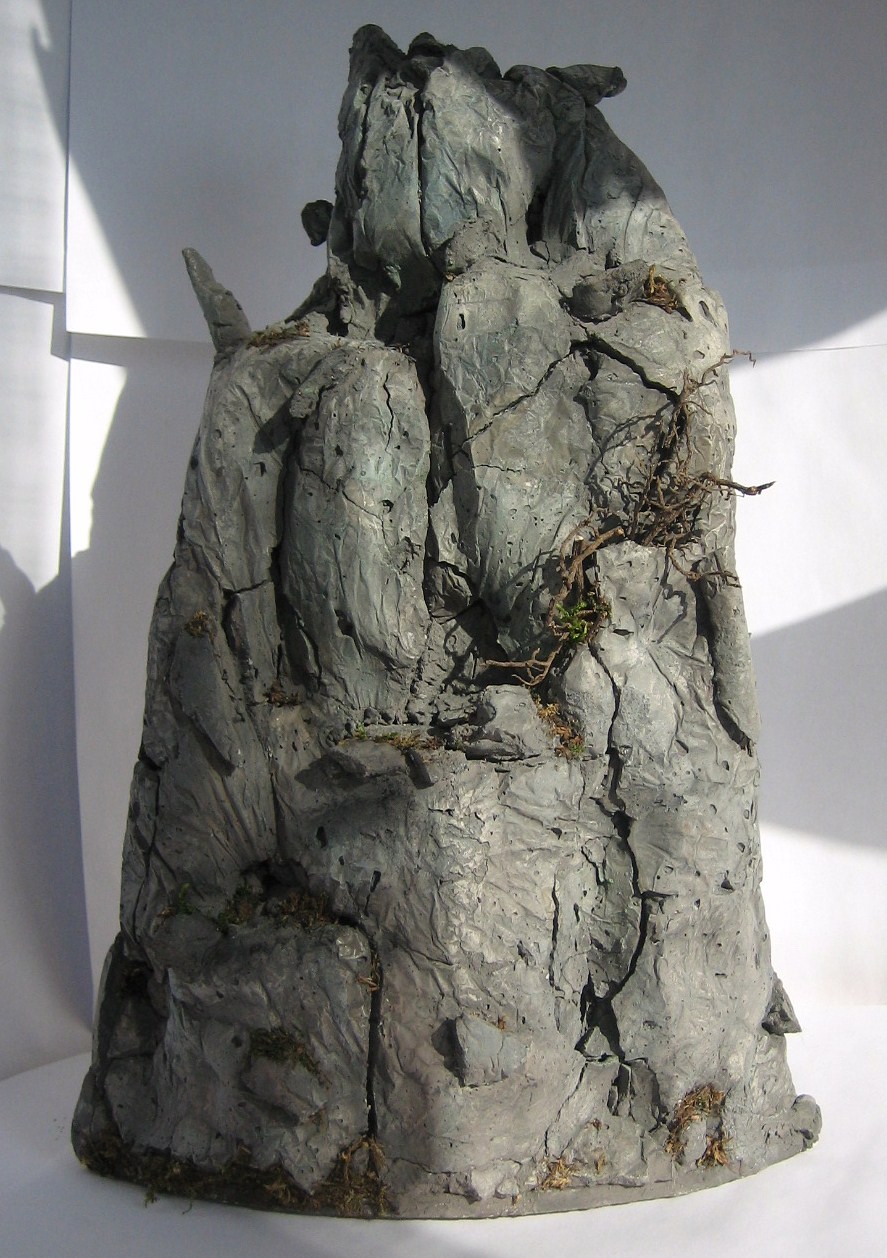 Отливка гипса/алебастра в фольгу – лишь первый (базовый) этап. Он годиться только для набора общей массы фрагмента горного массива. Для имитации же фактуры скальных пород он подходит мало. Основная причина – слишком гладкая поверхность скальника, чего в природе почти не бывает.