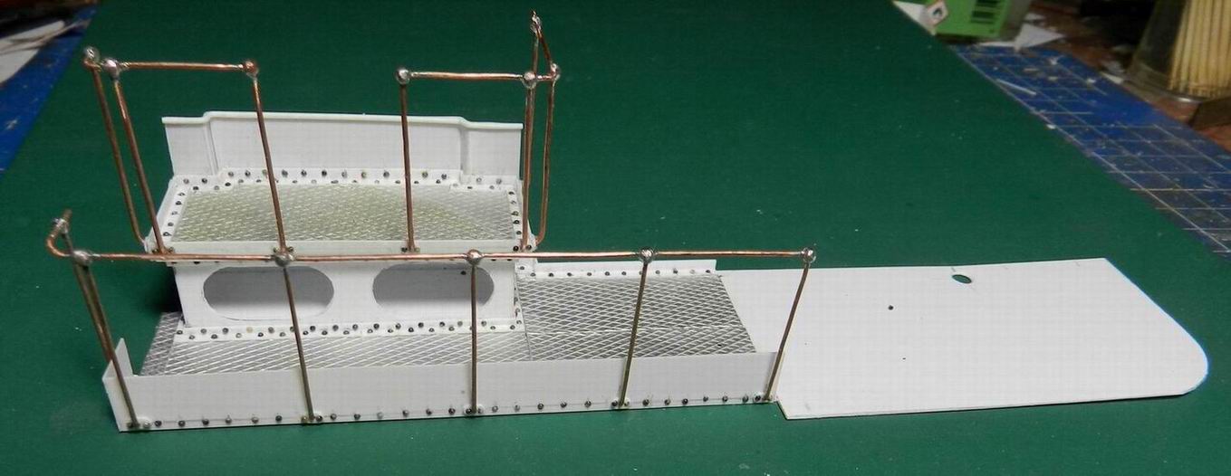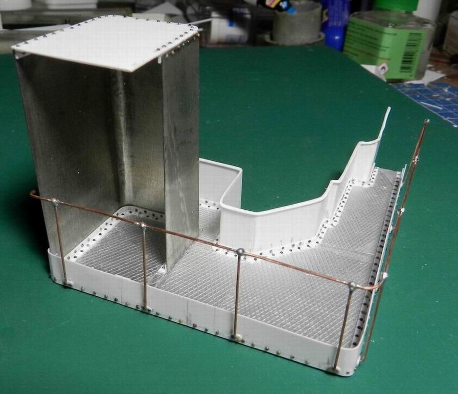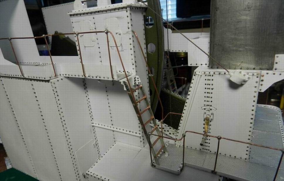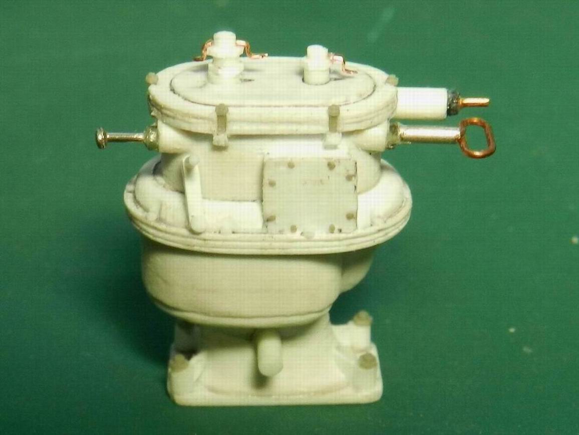 Наконец разродился следующими деталями по модели 305 мм. орудия. Изготовил две рубки для постов горизотального и вертикального наведения. Кроме того сделал рубку для поста управления огнём с площадкй. А также правую верхнюю площадку. Временно установил всё на журавль. Клеить буду после изготовления приборов и покраски нижней части.