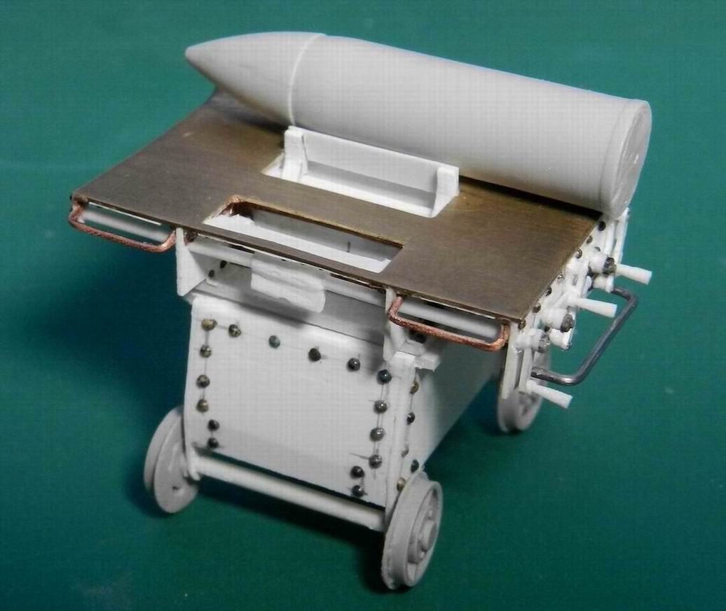 Далее изготовил тележку для подвозки снарядов. Чертежи, колёса и снаряды мне любезно предоставил Дмитрий Гуреев (dpl) из Питера. Мне осталось только собрать. Стол на тележке поворотный.