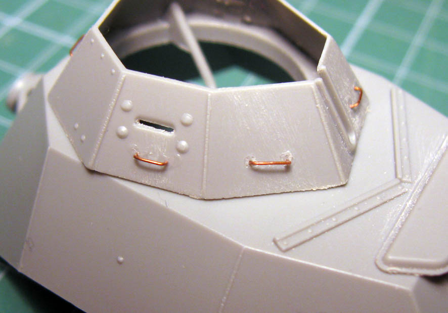 А скобы на башне не великоваты ли? Насколько я понял они используются для крепления брезента (принцип как на УАЗе или тент на грузовике) - на скобу надевается брезент прорезью и фиксируется ремешком, продеваемым через скобу.