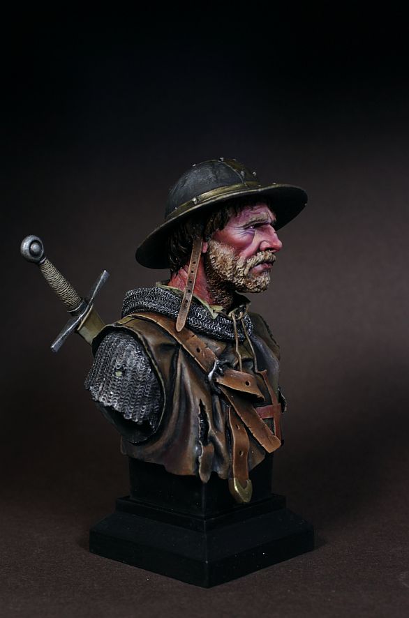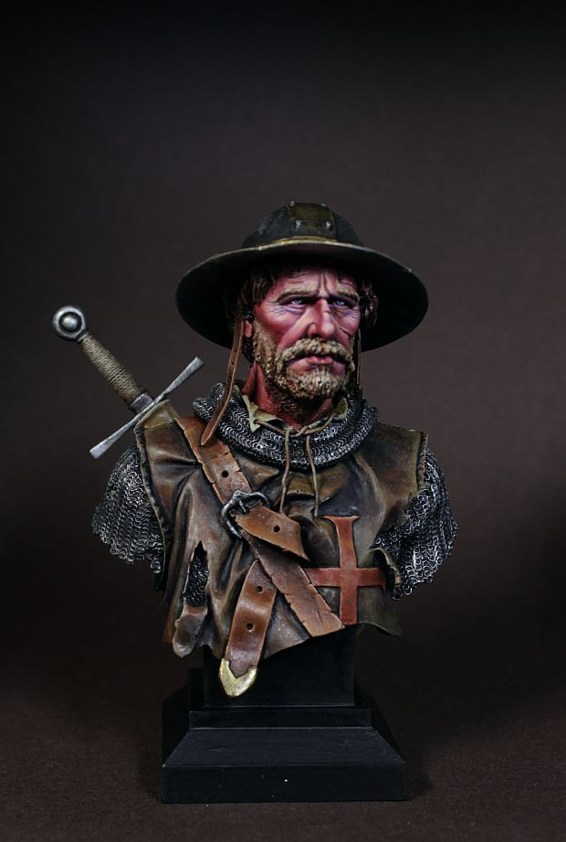 Сергей,спасибо! Как-то не пошёл по цвету,пришлось смывать кое-что,перекрашивать,а когда лишние слои,поверхность становится"тяжёлой".Лучше сразу всё расчитать,запастись терпением и временем ,выполнить работу на одном дыхании. Кстати бюст этого крестоносца не блещет качеством. Приятнее работать с YOUNG Miniatures.