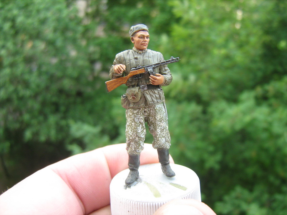 И ещё. Не будет ошибкой покраска ватника в тёмно-зелёный цвет,а штанов в желтоватый оттенок у 2ого барбоса?Я так понимаю,что боец получал штаны и ватник комплектом.Следовательно они должны бать одного цвета.Но хочется избежать монотонности.