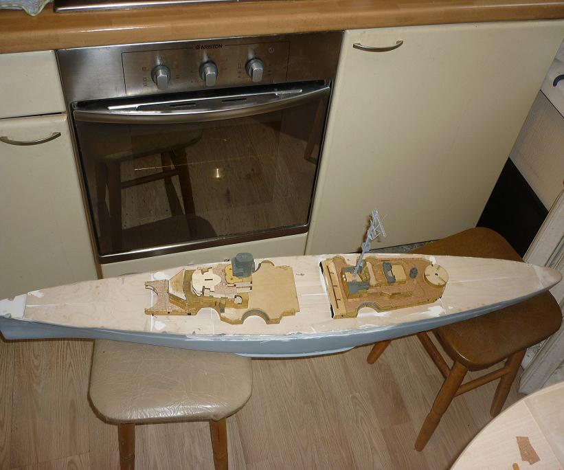 83 номер в работе, обшивка травлом носовых надстроек. Может кто подскажет по экипажу в 1:200 (хотя бы, что то похожее).