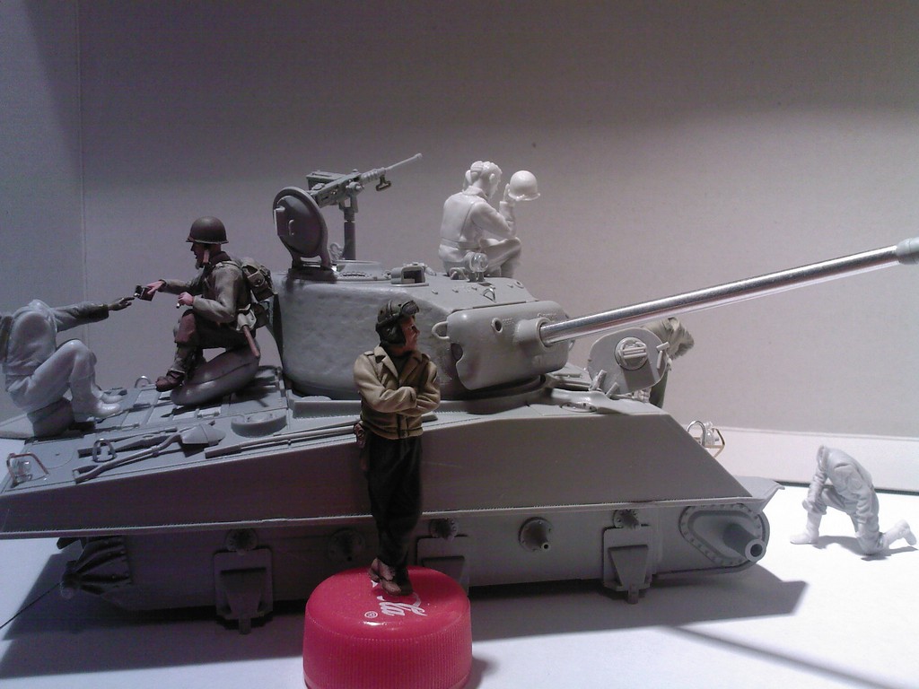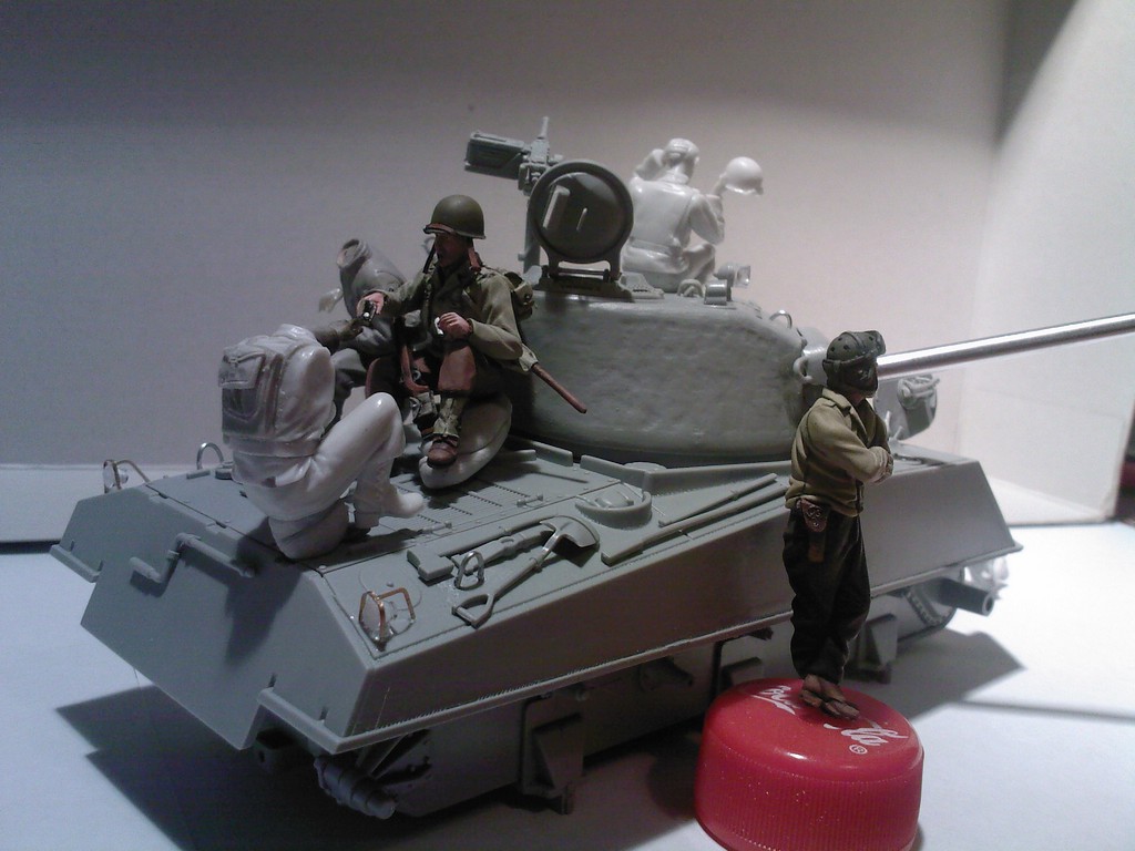 Продолжаем делать диораму. Шерман от Дрегона, перелепленные бойцы от миниарта, верлиндена и других производителей. И небольшая зарисовка с будущей диорамы.